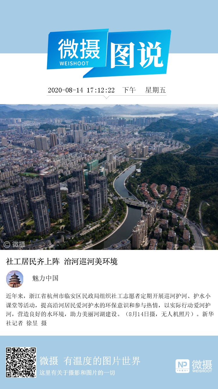 近年来,浙江省杭州市临安区民政局组织社工志愿者定期开展巡河护河、护水小课堂等活动,提高沿河居民爱河护水的环保意识和参与热情,以实际行动爱河护河,营造良好的水环境,助力美丽河湖建设。(8月14日摄,无人机照片)。新华社记者 徐昱 摄