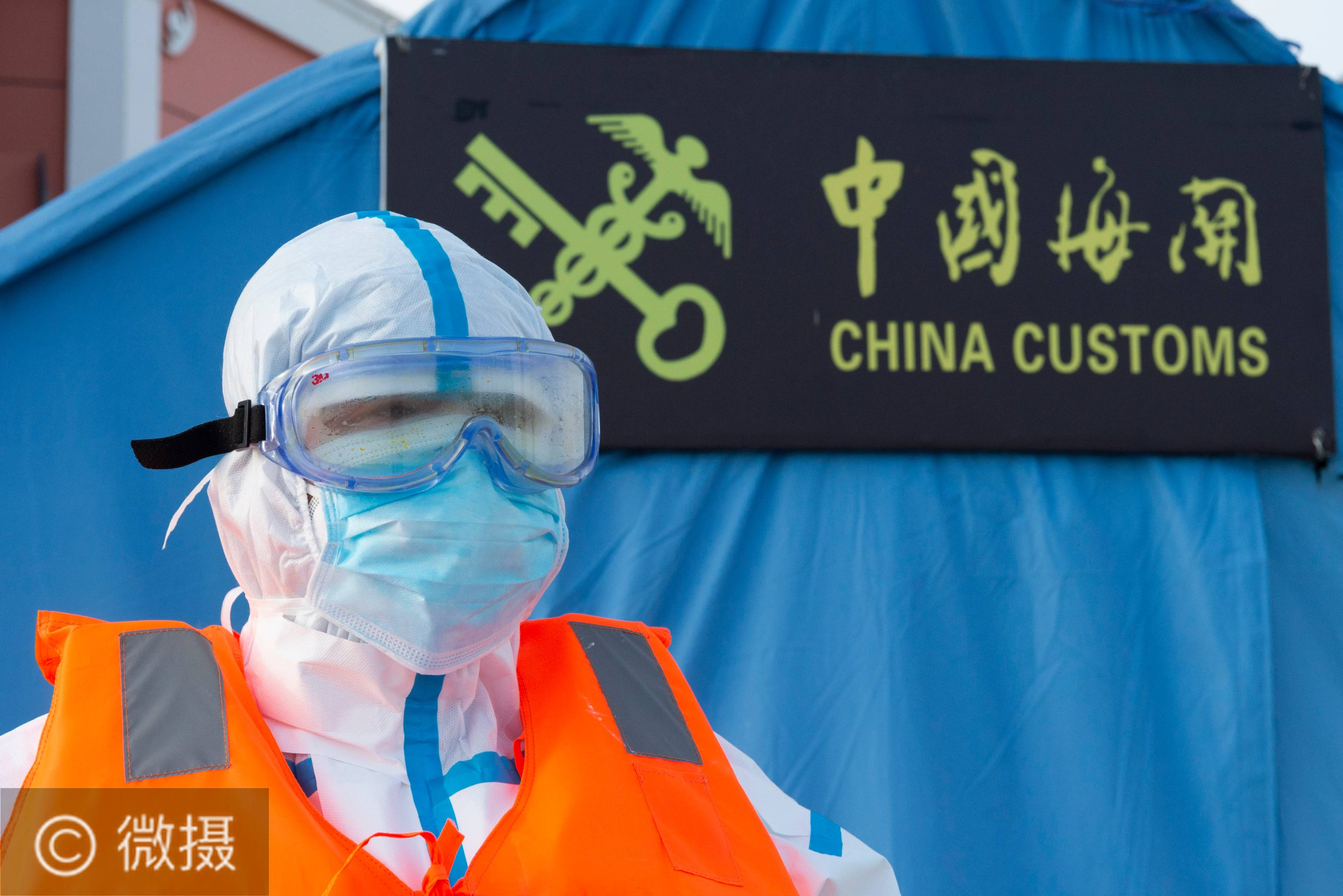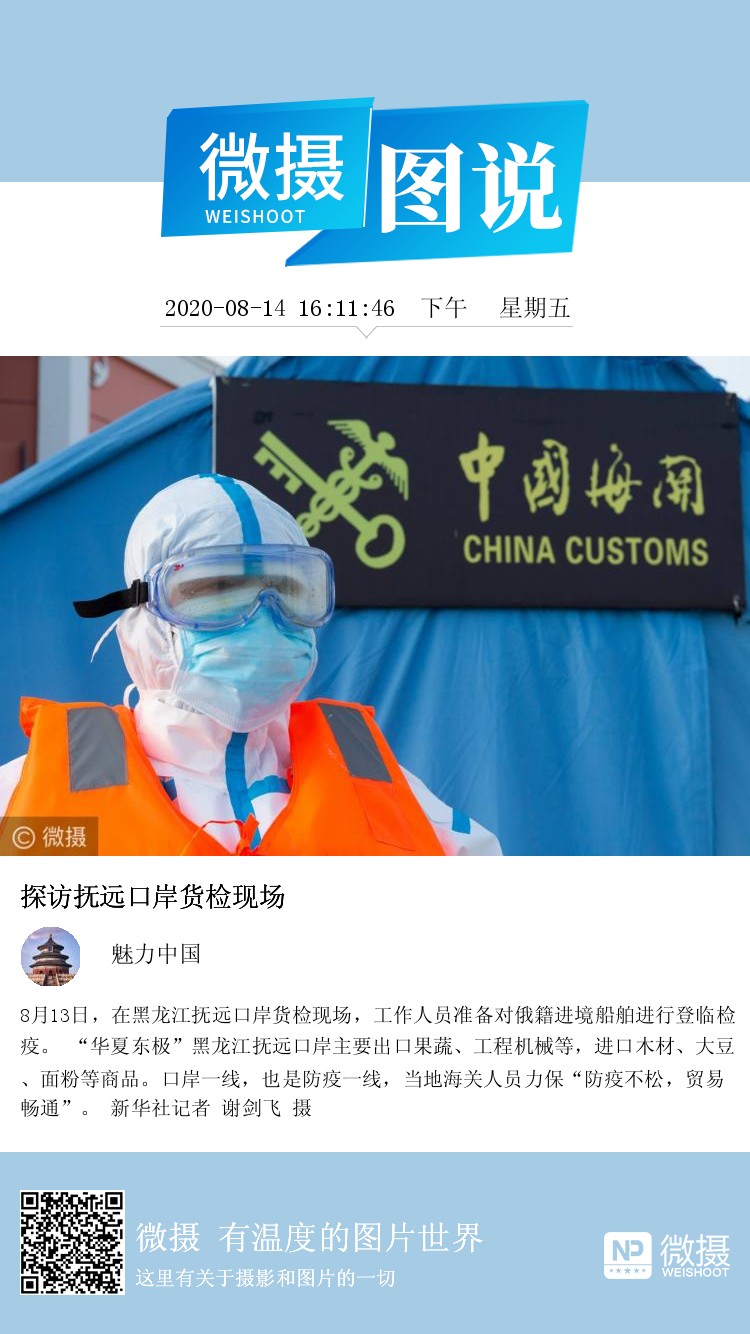 8月13日,在黑龙江抚远口岸货检现场,工作人员准备对俄籍进境船舶进行登临检疫。 “华夏东极”黑龙江抚远口岸主要出口果蔬、工程机械等,进口木材、大豆、面粉等商品。口岸一线,也是防疫一线,当地海关人员力保“防疫不松,贸易畅通”。 新华社记者 谢剑飞 摄