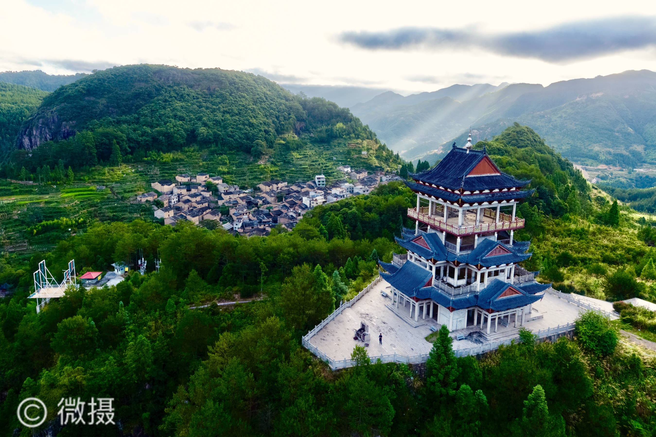 这是8月3日清晨拍摄的陈峭村及周围景观(无人机照片)。陈峭村坐落于福建省周宁县礼门乡后垅大峡谷的悬崖峭壁之巅,是远近闻名的避暑胜地。入夏以来,前来观光、露营、徒步的游客络绎不绝。2019年,陈峭村接待游客量突破10万人次,农民人均年收入达14800元。新华社记者 姜克红 摄