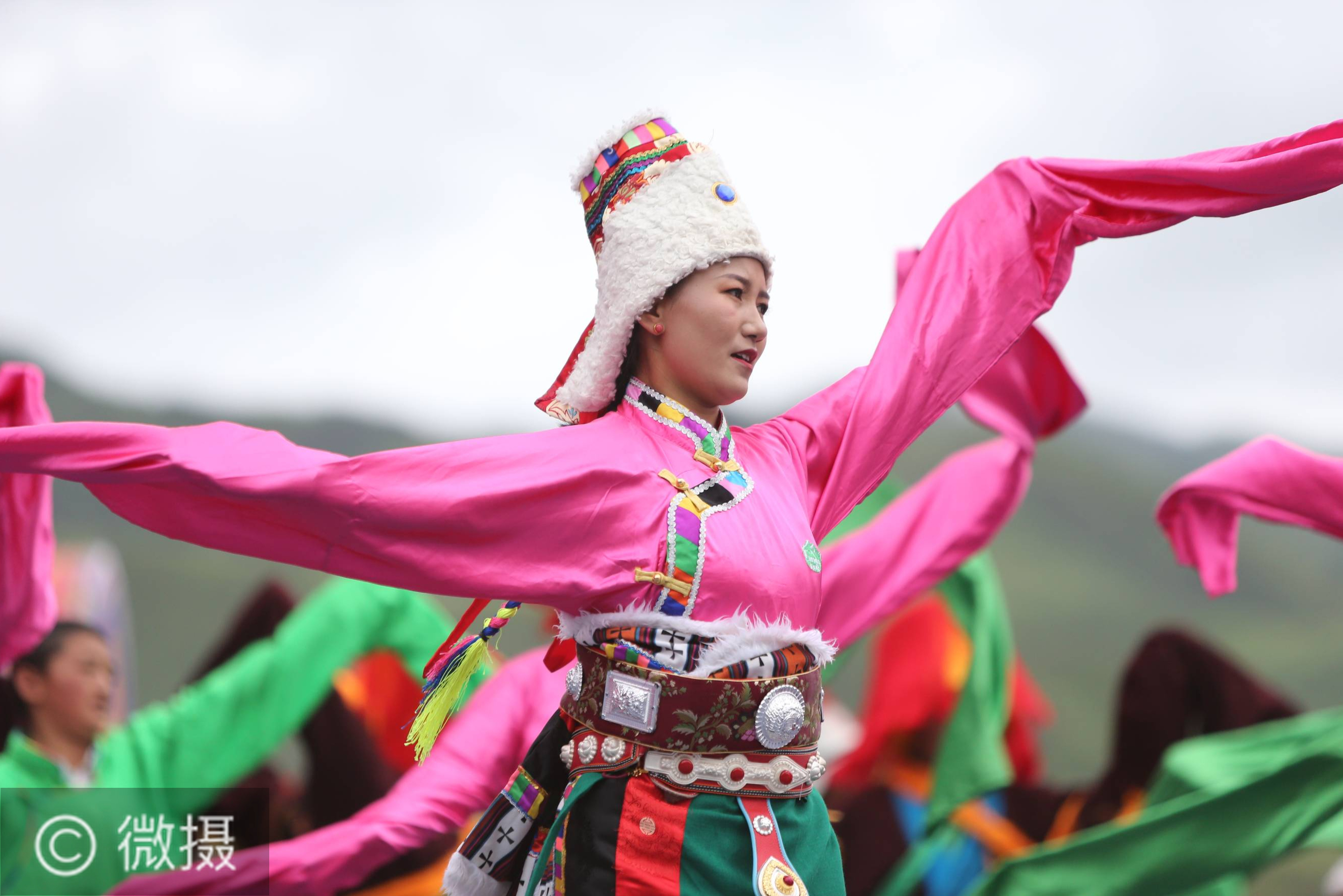 8月12日,演员在开幕式上表演舞蹈。当日,2020中国碌曲锅庄舞展演暨甘南藏族自治州第六届少数民族传统体育运动会在甘肃省甘南州碌曲县夏泽滩草原上举行。开幕式上,三千余名身着节日盛装的演员和当地群众在草原上起舞,雨后初晴的草原上充满欢声笑语。新华社记者 耿馨宁 摄