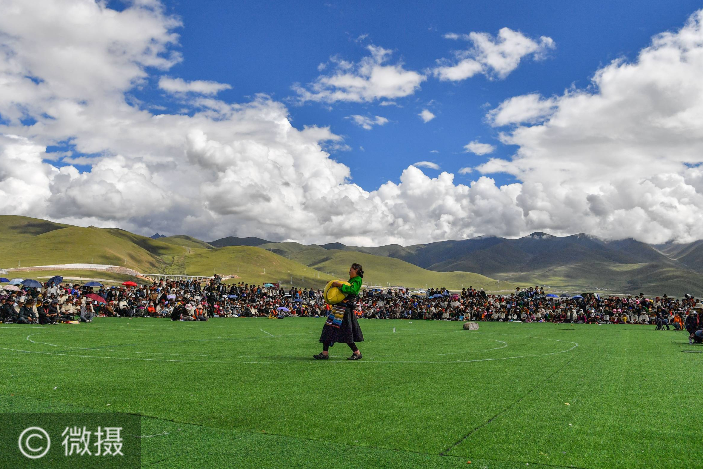 8月11日,选手在进行传统抱青稞比赛。当日,西藏拉萨市当雄县举行了传统抱石头、抱青稞比赛,这是“当吉仁”赛马节的重要活动之一。抱石头、抱青稞这种民族传统体育项目在西藏广大农牧区深受群众欢迎。新华社记者 晋美多吉 摄