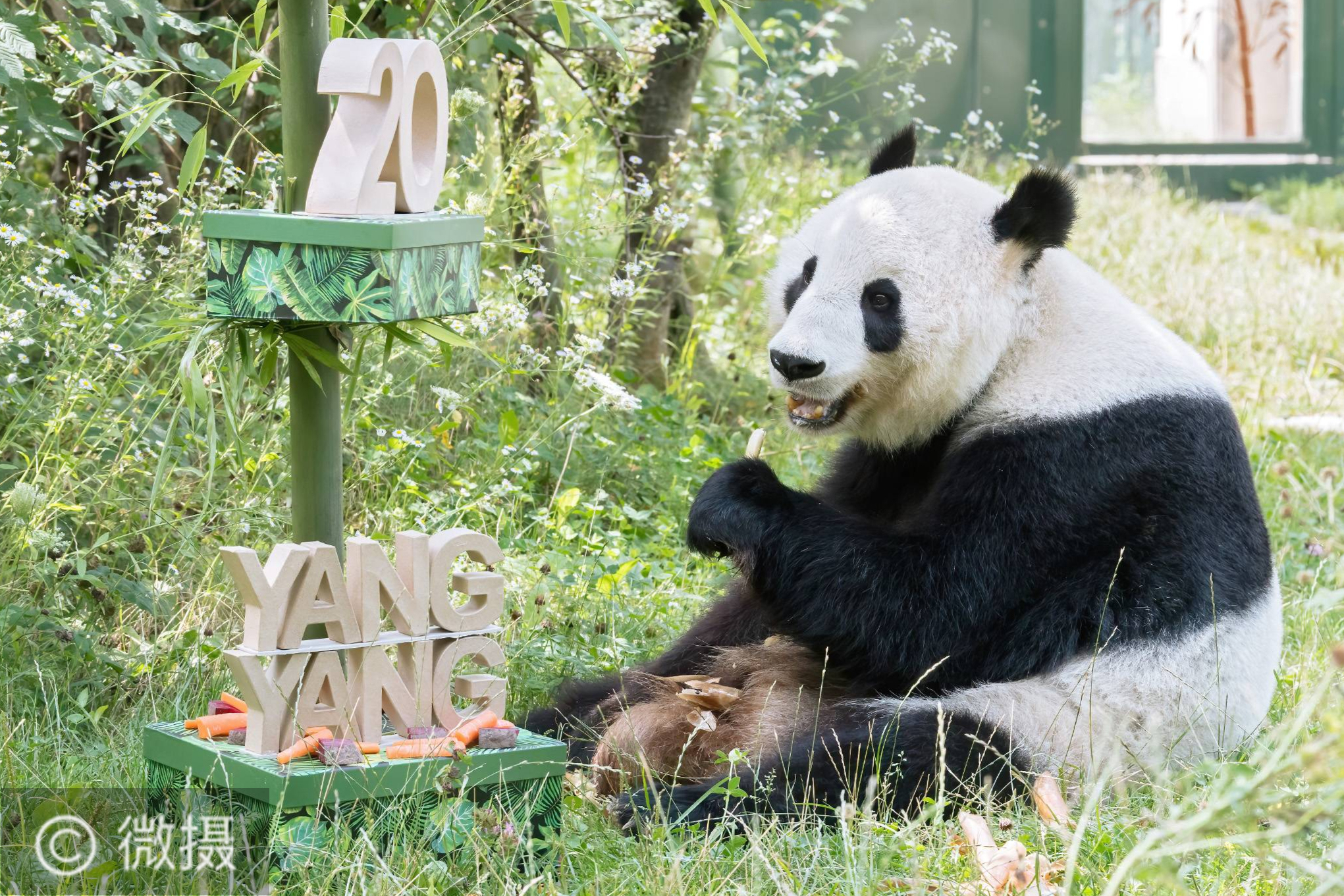 8月9日,在奥地利维也纳美泉宫动物园内,大熊猫“阳阳”享用生日礼物。近日,奥地利维也纳美泉宫动物园为生活于此的大熊猫“阳阳”庆祝20岁生日。“阳阳”自2003年来到维也纳美泉宫动物园以来,一直是这里的“明星”,深受人们喜爱。新华社发(丹尼尔·祖潘克摄)