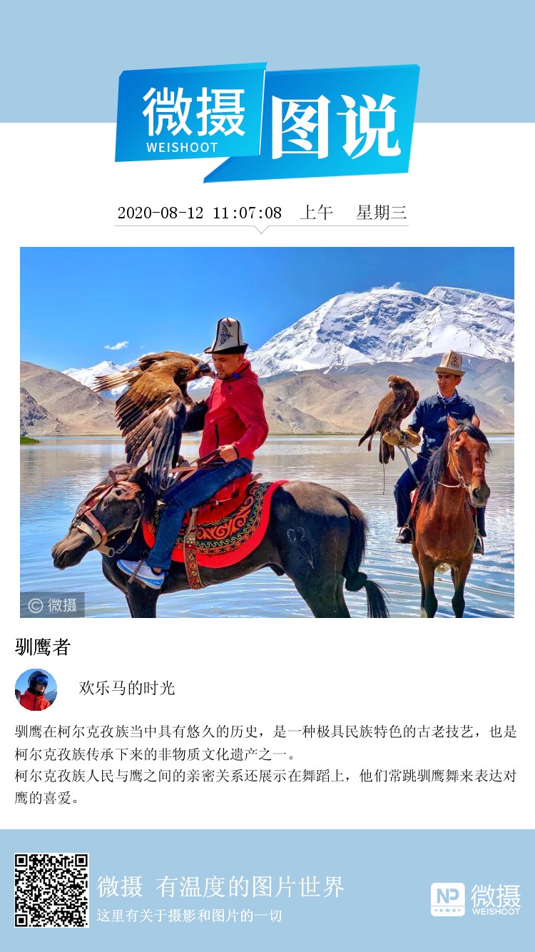 驯鹰在柯尔克孜族当中具有悠久的历史,是一种极具民族特色的古老技艺,也是柯尔克孜族传承下来的非物质文化遗产之一。 柯尔克孜族人民与鹰之间的亲密关系还展示在舞蹈上,他们常跳驯鹰舞来表达对鹰的喜爱。