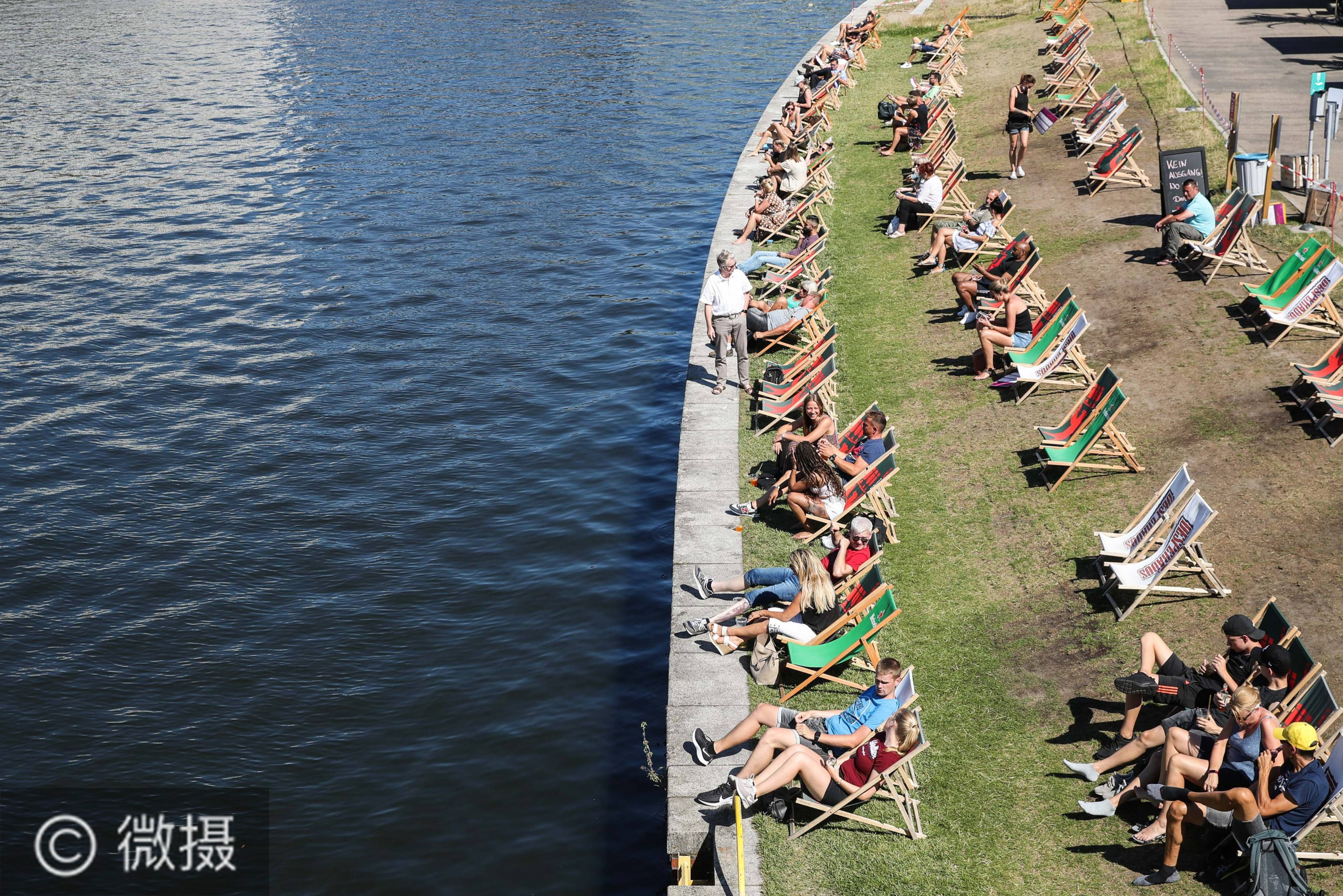 8月6日,人们在德国柏林的施普雷河畔休闲。德国疾控机构罗伯特·科赫研究所6日公布的新冠疫情数据显示,截至当地时间6日0时的单日新增确诊病例为1045例,是5月7日以来首次破千。新华社记者单宇琦摄