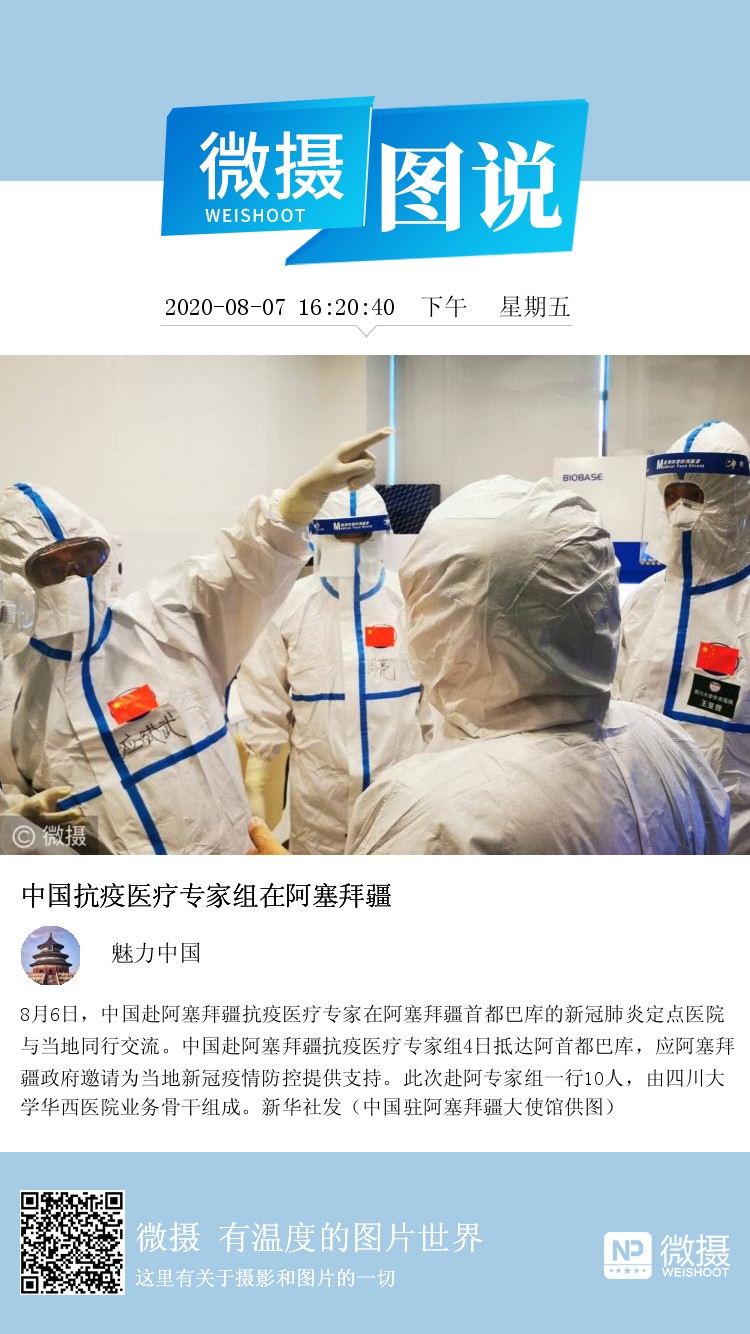 8月6日,中国赴阿塞拜疆抗疫医疗专家在阿塞拜疆首都巴库的新冠肺炎定点医院与当地同行交流。中国赴阿塞拜疆抗疫医疗专家组4日抵达阿首都巴库,应阿塞拜疆政府邀请为当地新冠疫情防控提供支持。此次赴阿专家组一行10人,由四川大学华西医院业务骨干组成。新华社发(中国驻阿塞拜疆大使馆供图)