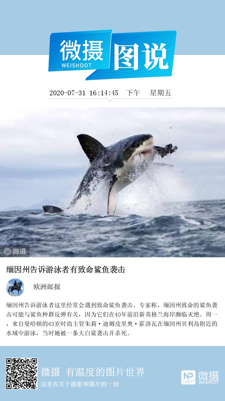 缅因州告诉游泳者这里经常会遇到致命鲨鱼袭击。专家称,缅因州致命的鲨鱼袭击可能与鲨鱼种群反弹有关,因为它们在40年前沿新英格兰海岸濒临灭绝。周一,来自曼哈顿的63岁时尚主管朱莉·迪姆皮里奥·霍洛瓦在缅因州贝利岛附近的水域中游泳,当时她被一条大白鲨袭击并杀死。