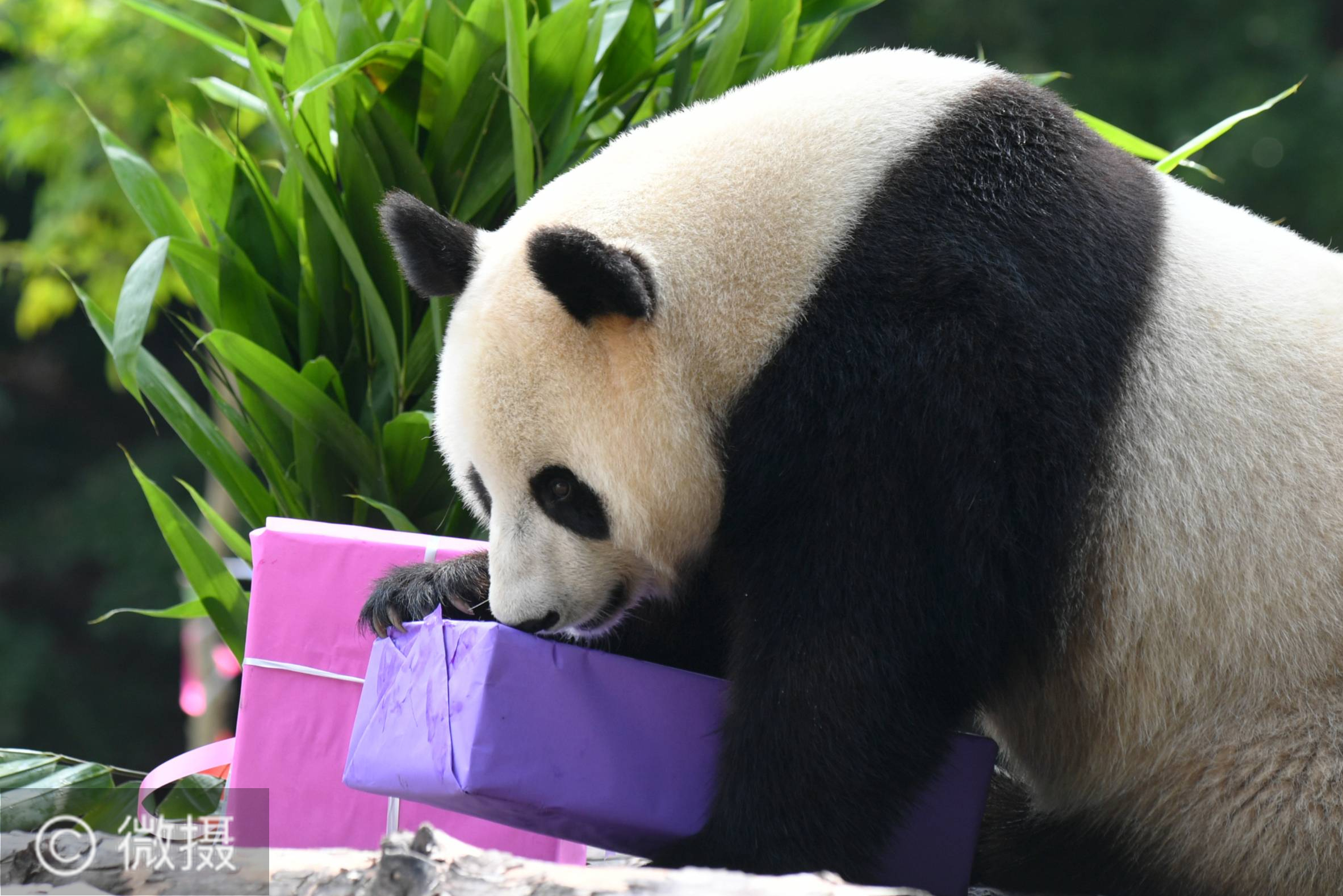 7月30日,大熊猫“初心”准备享用生日礼物。当日,吉林省东北虎园熊猫馆为大熊猫“初心”和“牧云”举行4周岁生日庆祝活动,饲养员精心准备了水果、竹子等丰盛美食,为“初心”“牧云”送上祝福。新华社记者 林宏 摄