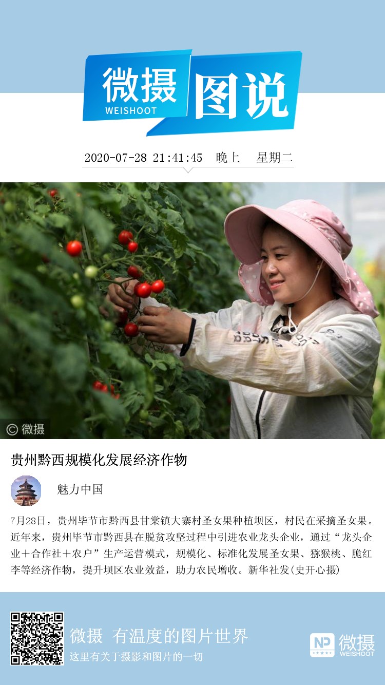 7月28日,贵州毕节市黔西县甘棠镇大寨村圣女果种植坝区,村民在采摘圣女果。近年来,贵州毕节市黔西县在脱贫攻坚过程中引进农业龙头企业,通过“龙头企业+合作社+农户”生产运营模式,规模化、标准化发展圣女果、猕猴桃、脆红李等经济作物,提升坝区农业效益,助力农民增收。新华社发(史开心摄)