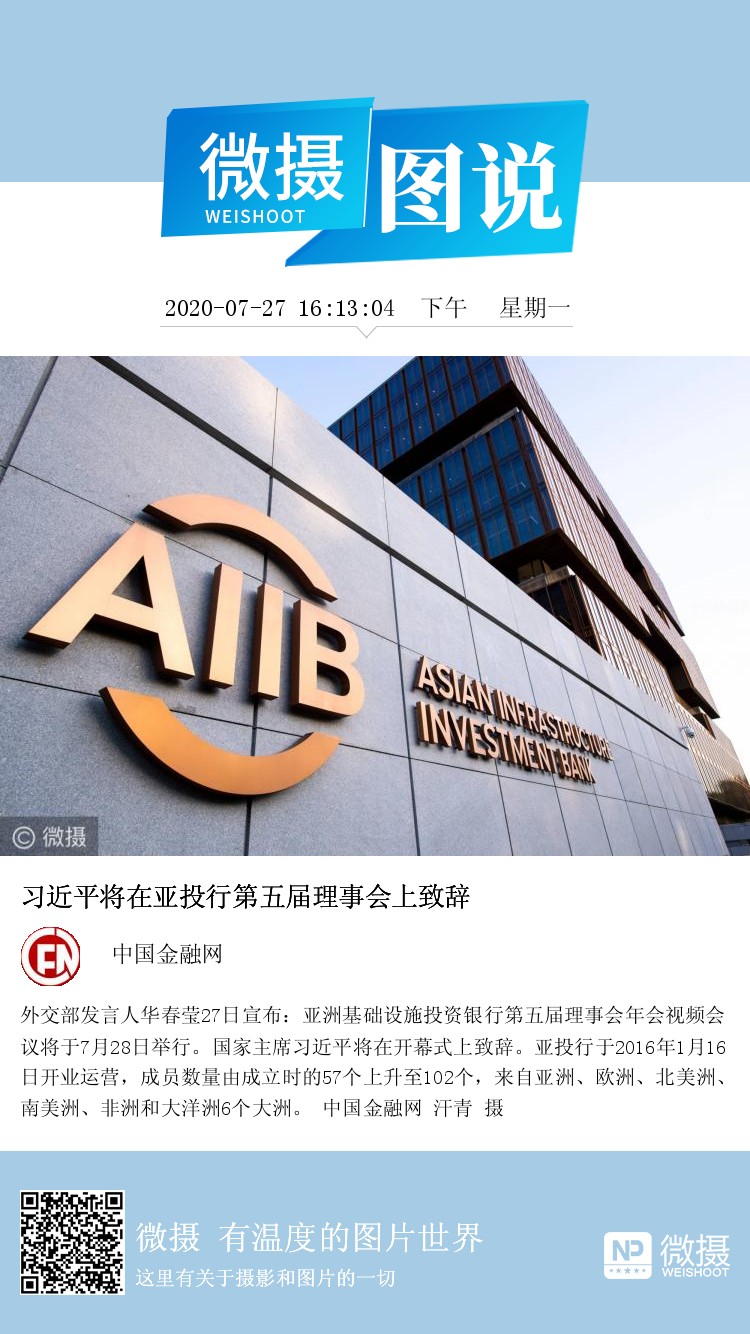 外交部发言人华春莹27日宣布:亚洲基础设施投资银行第五届理事会年会视频会议将于7月28日举行。国家主席习近平将在开幕式上致辞。亚投行于2016年1月16日开业运营,成员数量由成立时的57个上升至102个,来自亚洲、欧洲、北美洲、南美洲、非洲和大洋洲6个大洲。 中国金融网 汗青 摄