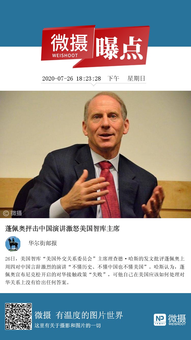 26日,美国智库“美国外交关系委员会”主席理查德·哈斯的发文批评蓬佩奥上周四对中国言辞激烈的演讲“不懂历史、不懂中国也不懂美国”。哈斯认为,蓬佩奥宣布尼克松开启的对华接触政策“失败”,可他自己在美国应该如何处理对华关系上没有给出任何答案。