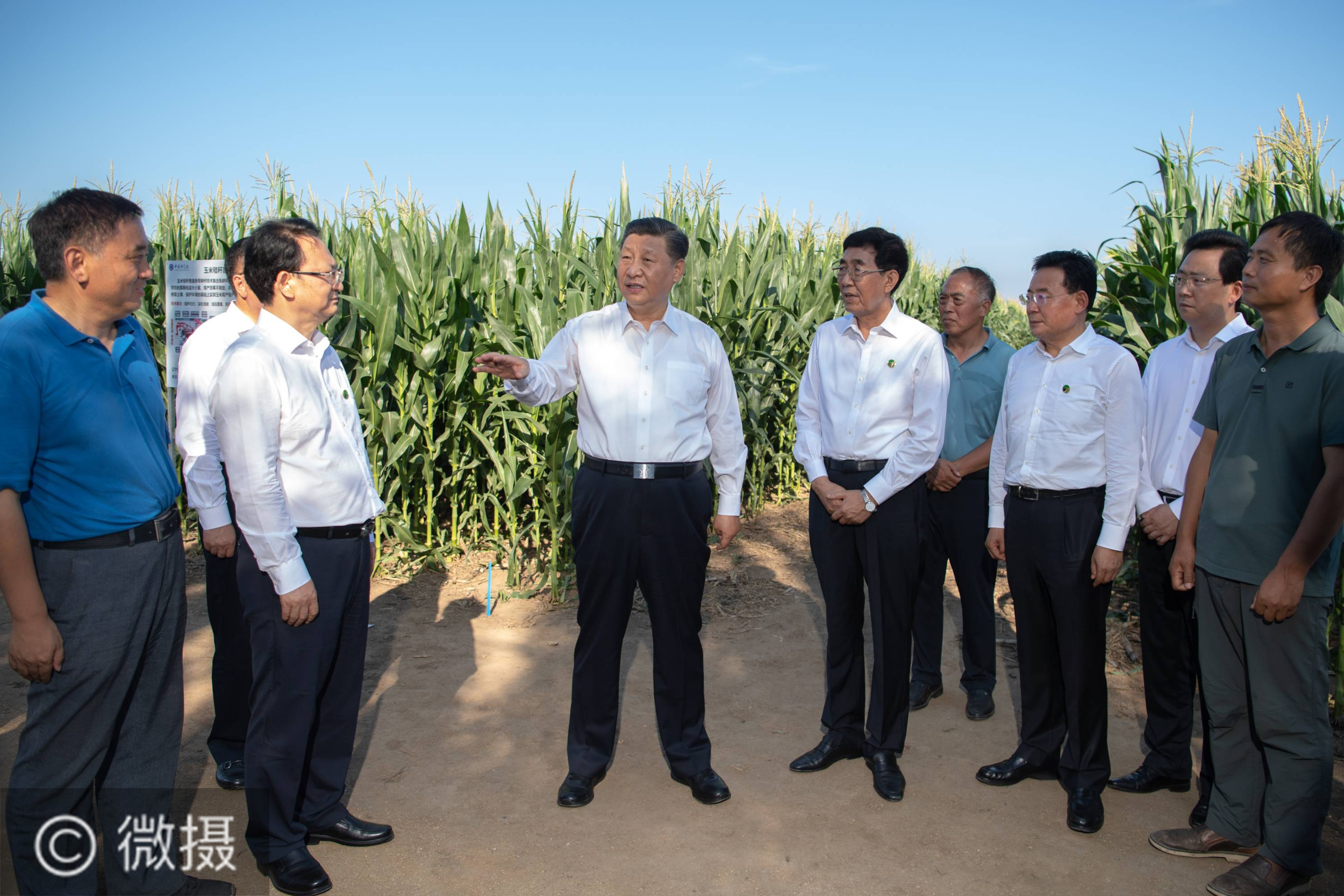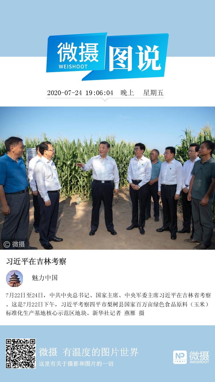 7月22日至24日,中共中央总书记、国家主席、中央军委主席习近平在吉林省考察。这是7月22日下午,习近平考察四平市梨树县国家百万亩绿色食品原料(玉米)标准化生产基地核心示范区地块。新华社记者 燕雁 摄