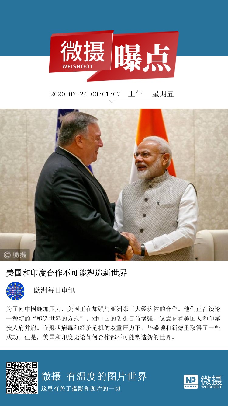为了向中国施加压力,美国正在加强与亚洲第三大经济体的合作。他们正在谈论一种新的“塑造世界的方式”。对中国的防御日益增强,这意味着美国人和印第安人肩并肩。在冠状病毒和经济危机的双重压力下,华盛顿和新德里取得了一些成功。但是,美国和印度无论如何合作都不可能塑造新的世界。