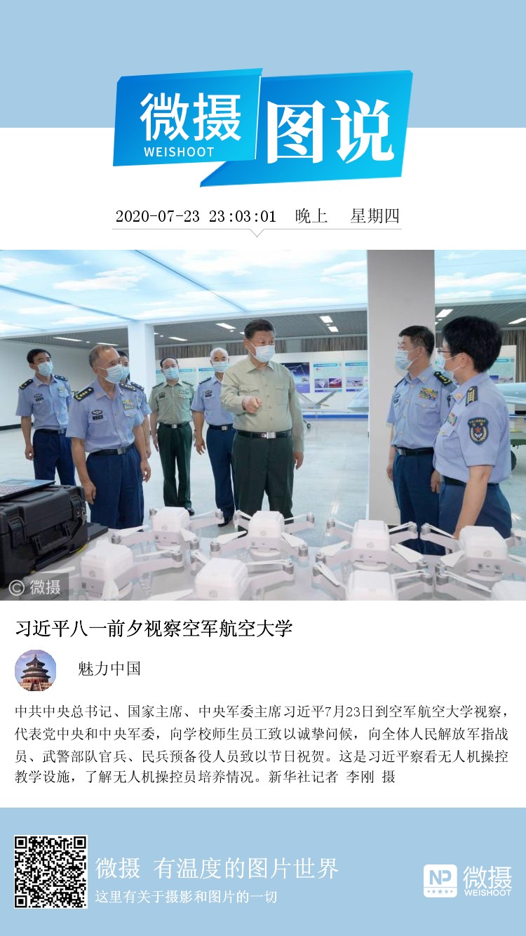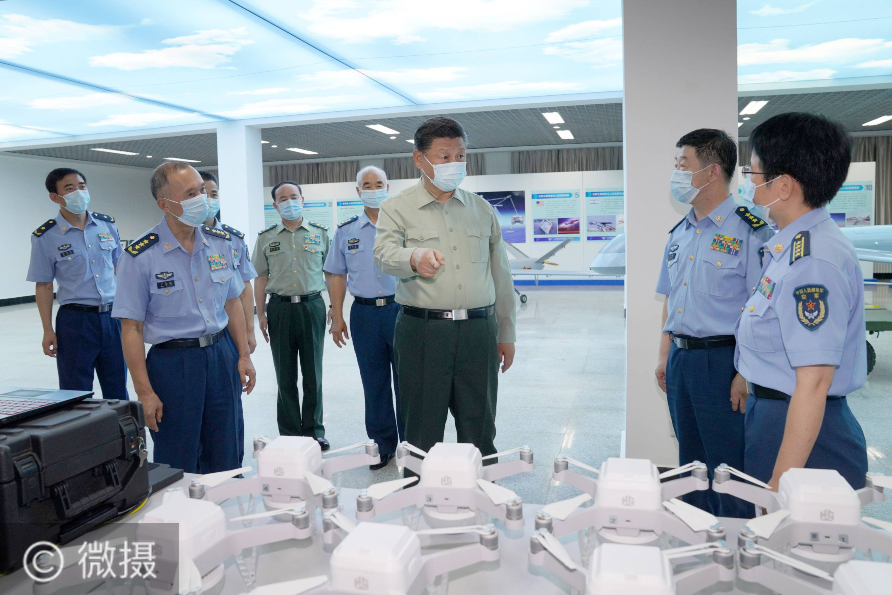 中共中央总书记、国家主席、中央军委主席习近平7月23日到空军航空大学视察,代表党中央和中央军委,向学校师生员工致以诚挚问候,向全体人民解放军指战员、武警部队官兵、民兵预备役人员致以节日祝贺。这是习近平察看无人机操控教学设施,了解无人机操控员培养情况。新华社记者 李刚 摄