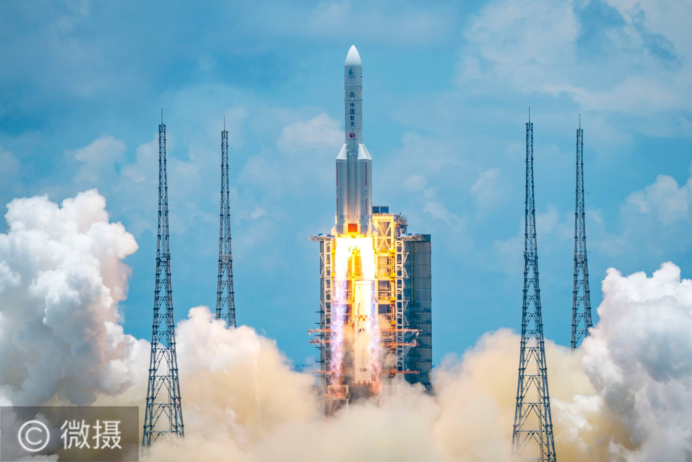 2020年7月23日12时41分,我国在海南岛东北海岸中国文昌航天发射场,用长征五号遥四运载火箭将我国首次火星探测任务“天问一号”探测器发射升空,飞行2000多秒后,成功将探测器送入预定轨道,开启火星探测之旅,迈出了我国自主开展行星探测的第一步。新华社记者 胡喆 摄