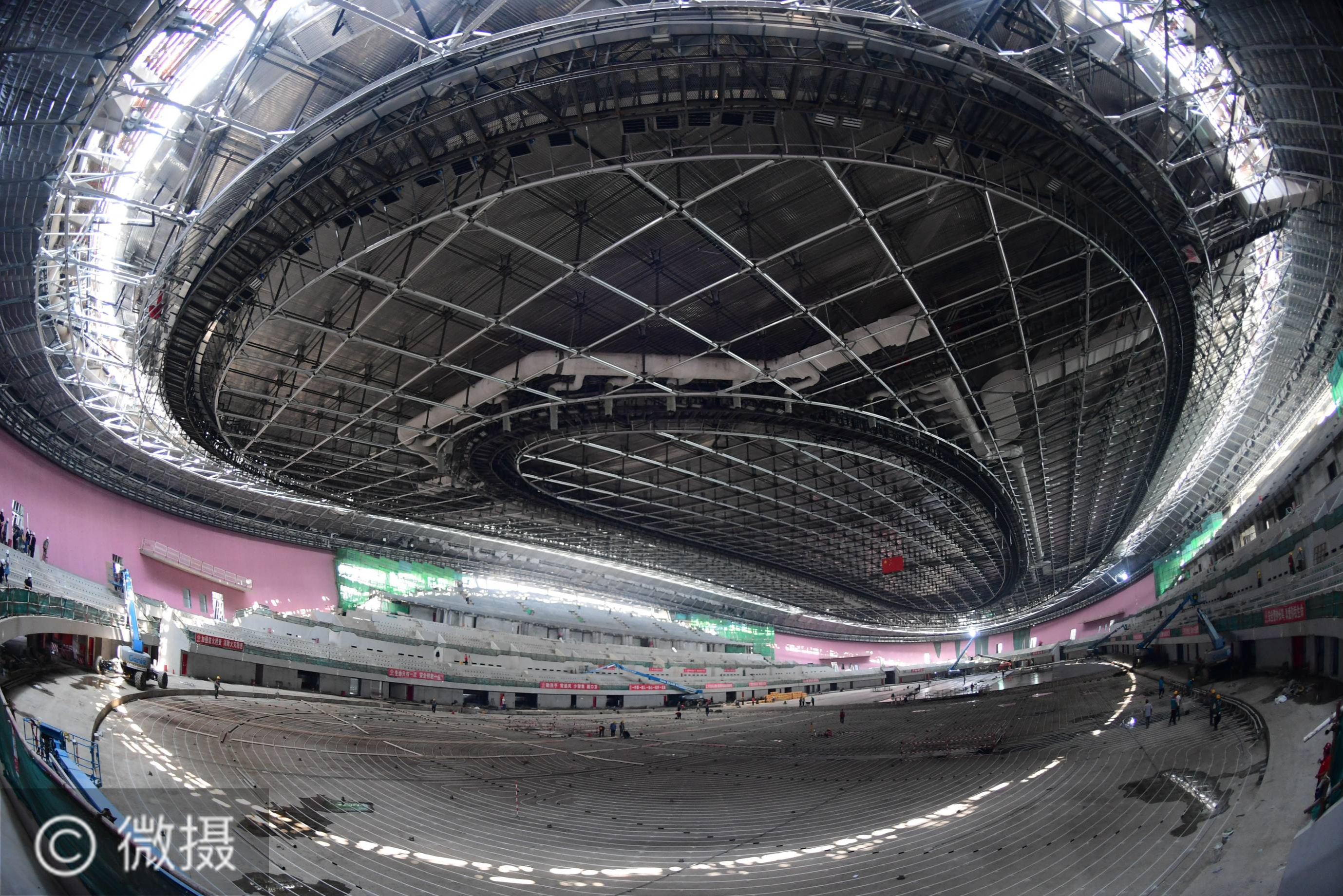 这是7月22日在北京拍摄的正在施工的国家速滑馆内景。据悉,北京冬奥会将成为奥运历史上第一届全部使用绿色清洁电能的奥运会,随着今年6月张北柔性直流输变电工程的投用,来自张家口的风电、光伏电能等绿色清洁电能正式进入北京。新华社记者张晨霖摄