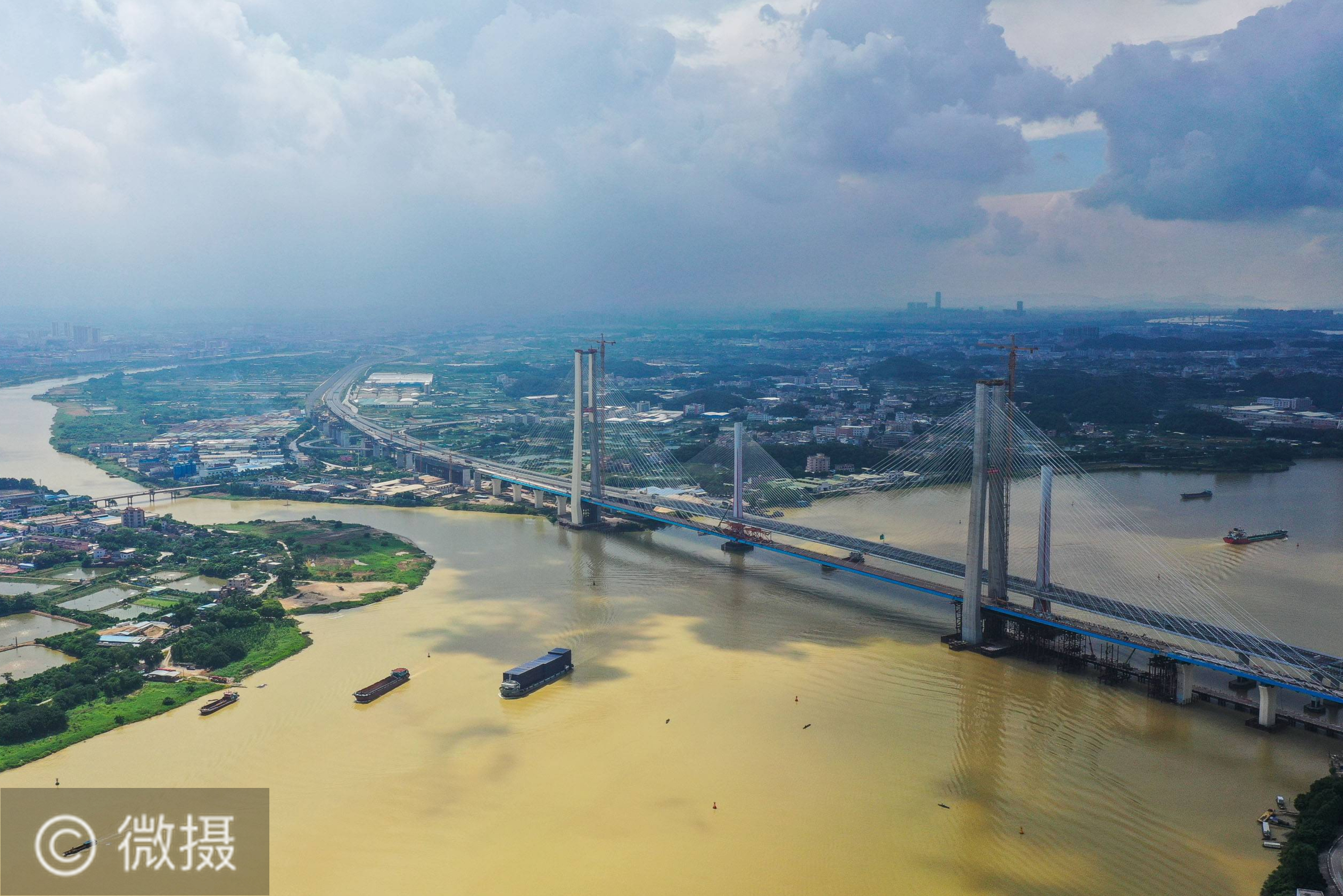 南沙港铁路跨西江特大斜拉桥完成吊装
