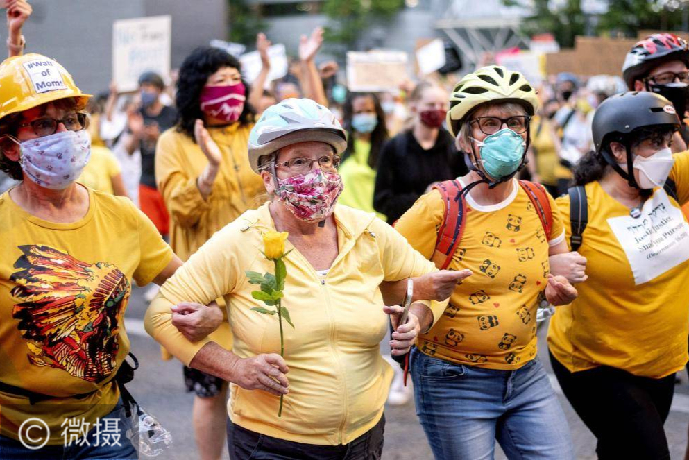 特朗普总统威胁要派遣联邦特工前往芝加哥和其他民主党控制的城市,以恢复秩序,遭到反对者指责。身穿迷彩服的联邦军官在试图清除示威者,使用催泪瓦斯并用棍棒殴打示威者时被指控犯有不当暴力行为。 在一次反抗议中,约有70名妇女将手臂链接在一起,高喊:“妈妈在这里! 美联储保持清醒!”