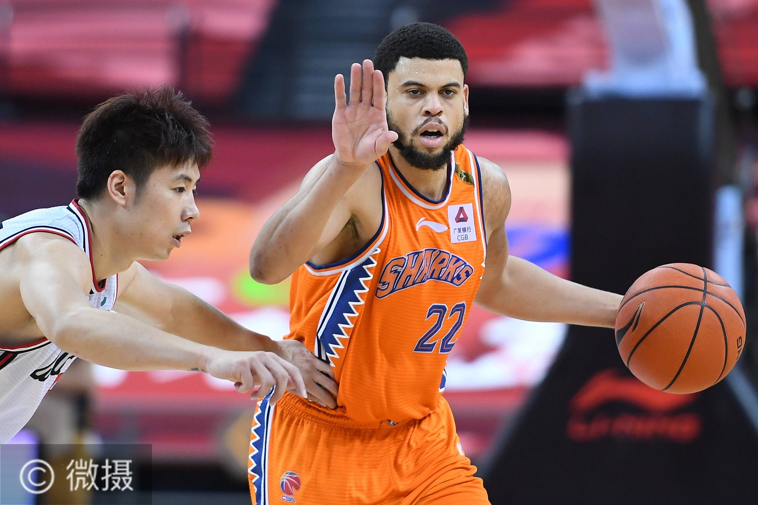 7月21日,上海久事队球员麦卡勒姆(右)在比赛中带球进攻。当日,在山东青岛举行的2019-2020赛季中国男子篮球职业联赛(CBA)复赛第二阶段(红岛赛区)比赛中,上海久事队以107比93战胜深圳马可波罗队。新华社记者朱峥摄