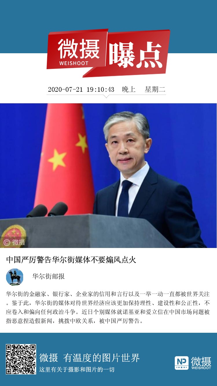 华尔街的金融家、银行家、企业家的信用和言行以及一举一动一直都被世界关注。鉴于此,华尔街的媒体对待世界经济应该更加保持理性、建设性和公正性,不应卷入和偏向任何政治斗争。近日个别媒体就诺基亚和爱立信在中国市场问题被指恶意捏造假新闻,挑拨中欧关系,被中国严厉警告。