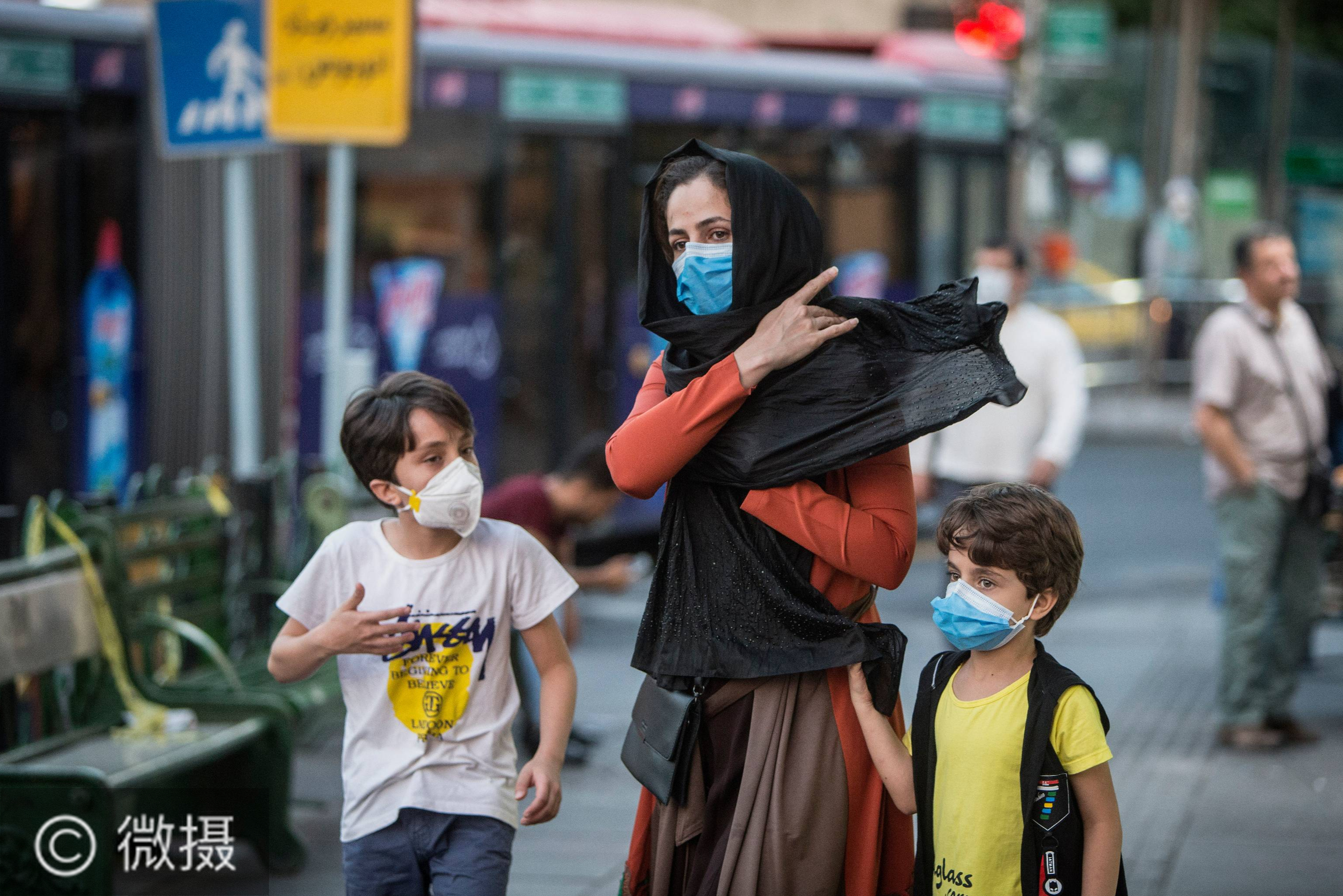 7月19日,伊朗德黑兰市民佩戴口罩出行。伊朗卫生部19日宣布,新增确诊病例2182例,累计确诊273656例;累计死亡14188例,累计治愈237788例。新华社发(艾哈迈德·哈拉比萨斯摄)