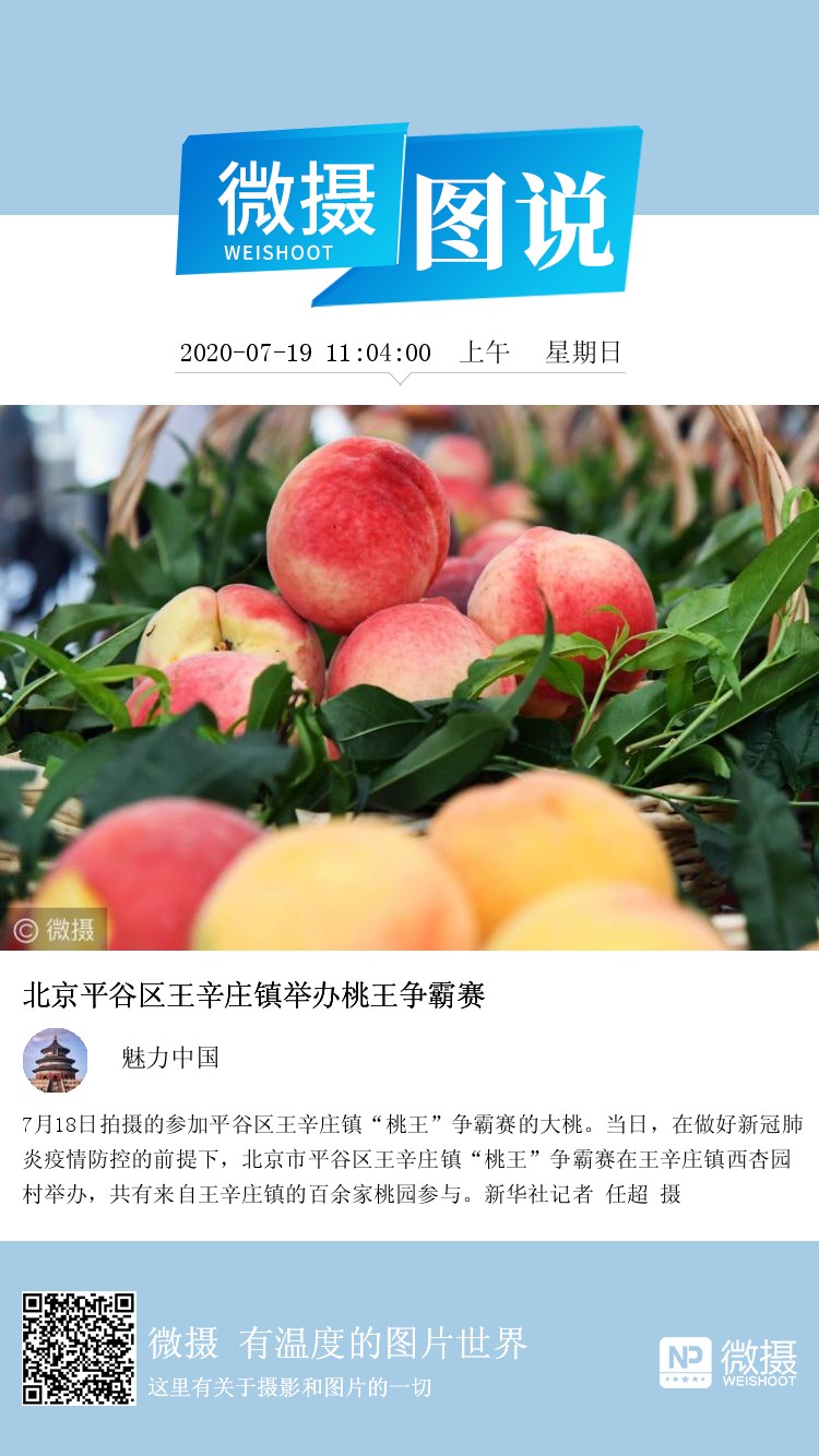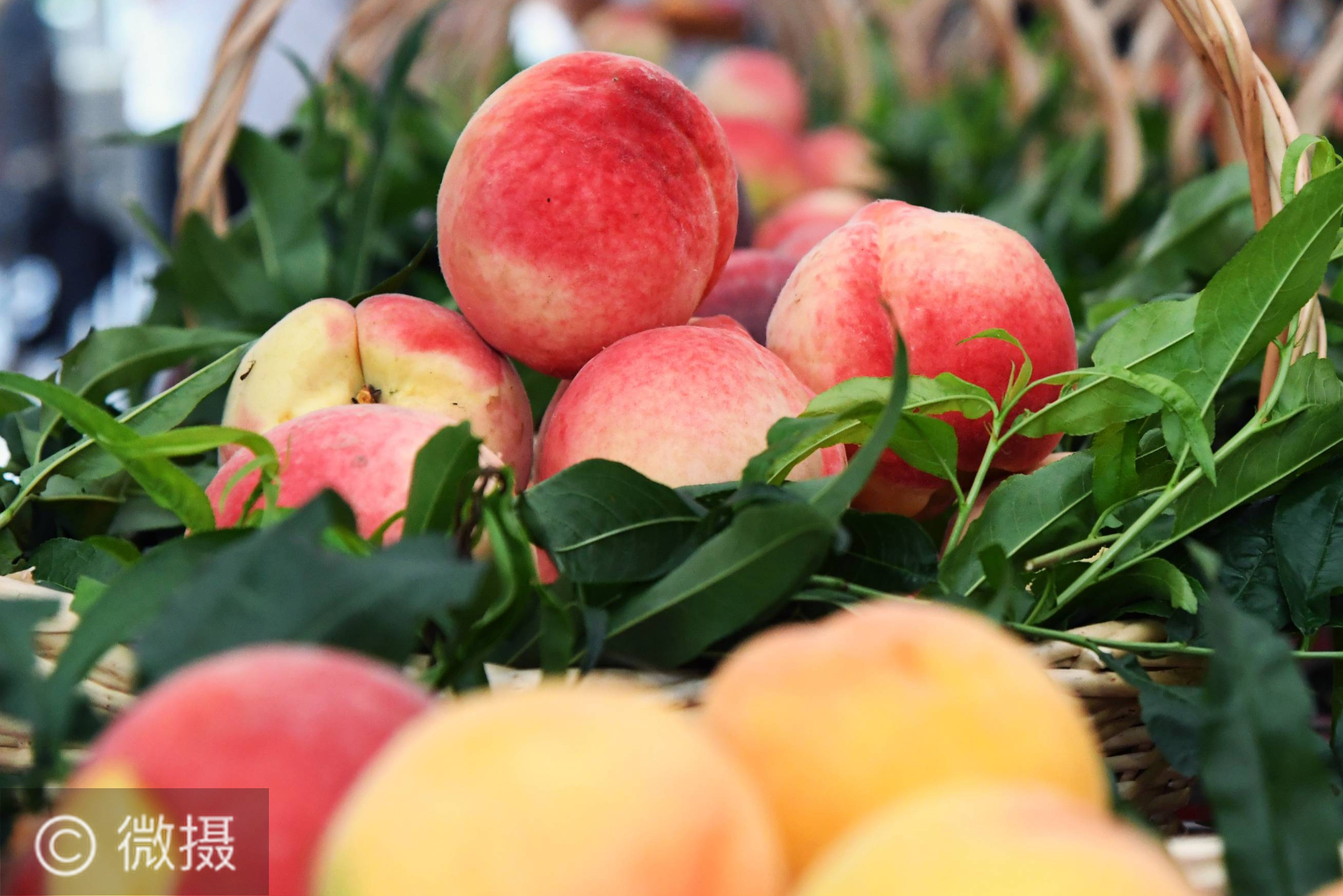 7月18日拍摄的参加平谷区王辛庄镇“桃王”争霸赛的大桃。当日,在做好新冠肺炎疫情防控的前提下,北京市平谷区王辛庄镇“桃王”争霸赛在王辛庄镇西杏园村举办,共有来自王辛庄镇的百余家桃园参与。新华社记者 任超 摄