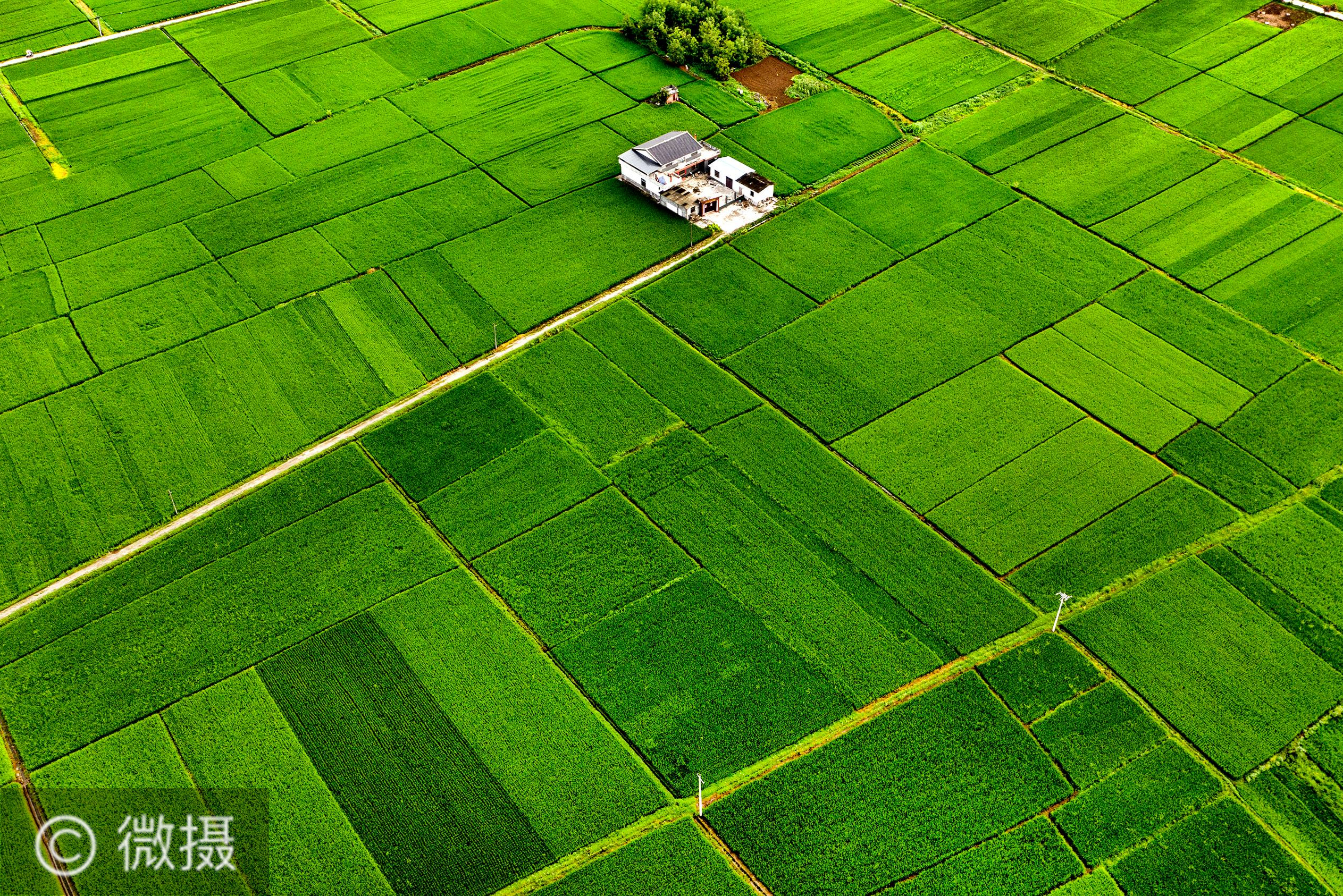 7月15日拍摄的洋县戚氏街道朱家村一带的稻田。时下,陕西省汉中市洋县18万亩水稻田像一块块绿色地毯铺在大地上。掠过头顶的朱鹮和白鹭,拍打着翅膀落在田里觅食,构成一道独特美景。洋县被称为“朱鹮故乡”,为了保护朱鹮,2020年2月,洋县退出贫困县序列。新华社记者 陶明 摄