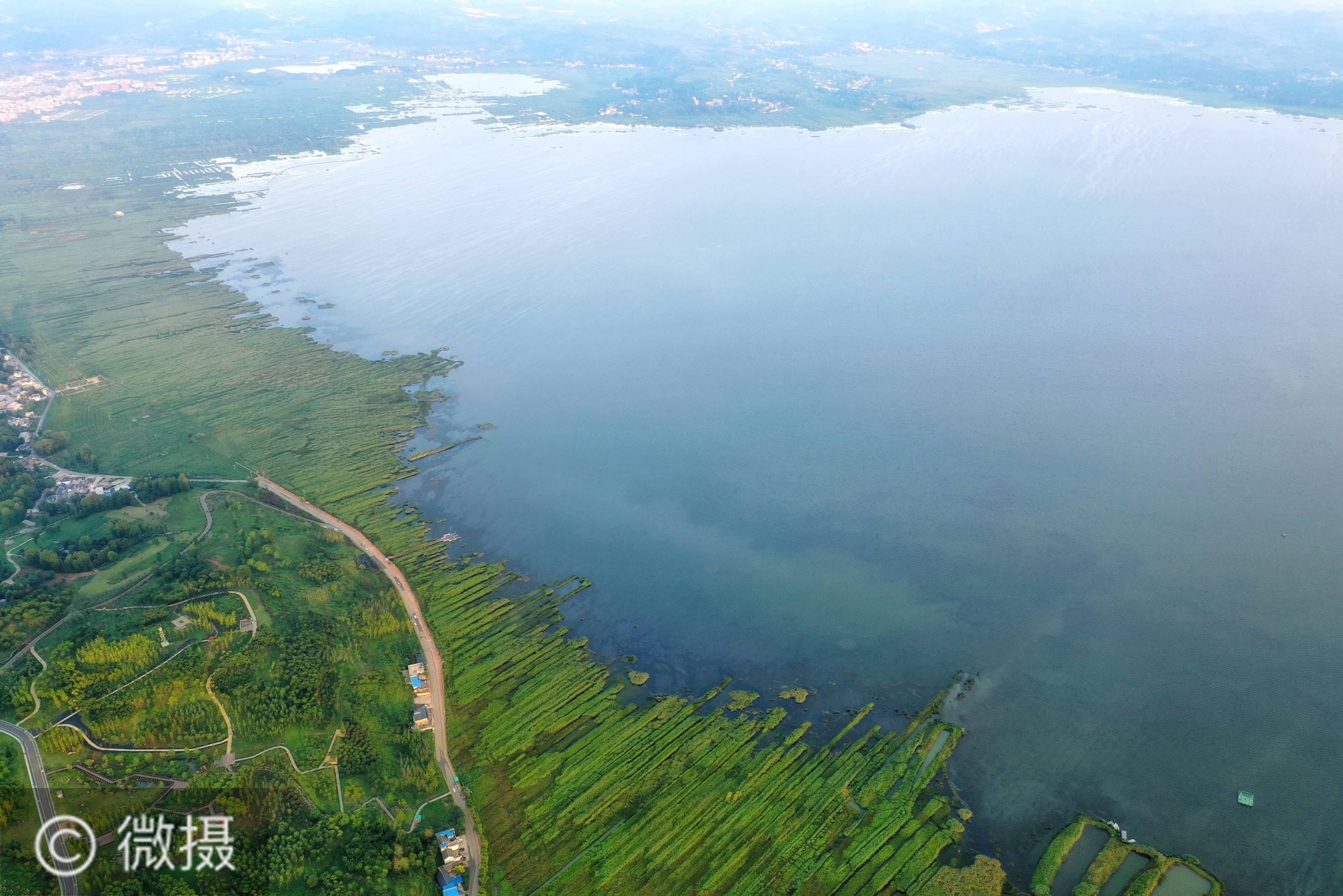 7月14日拍摄的草海沿岸风光(无人机照片)。夏日时节,位于贵州省毕节市威宁县的草海国家级自然保护区阳光明媚,水天一色,呈现出一幅美丽的自然画卷。新华社记者 刘续 摄