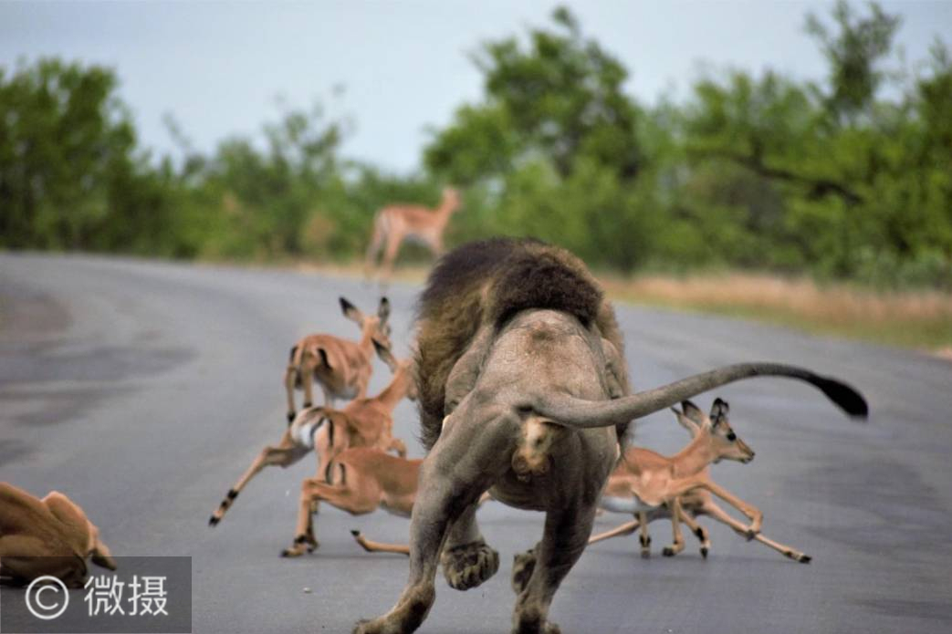 摄影师戏剧性的照片捕捉到一头400磅重的狮子将目光投向七只黑斑羚吃晚饭的瞬间。27岁的摄影师乍得·费舍尔来自南非德班,当时克鲁格国家公园距他的车仅20英尺,突然出现了狮子。丛林之王走上了狂暴之路,直奔黑斑羚群。费舍尔思维敏捷,拿出相机,捕捉了令人难以置信的场景。