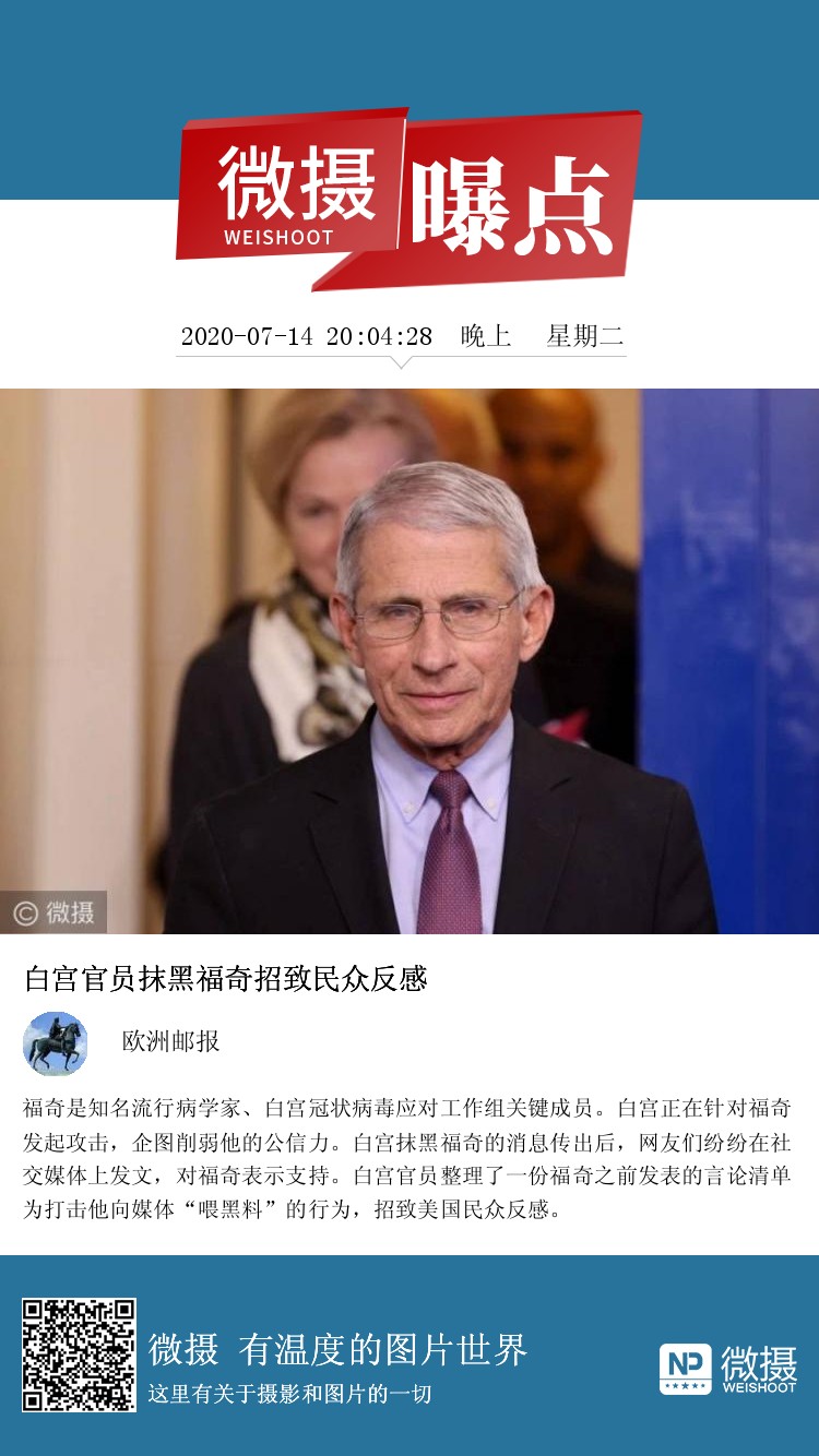 福奇是知名流行病学家、白宫冠状病毒应对工作组关键成员。白宫正在针对福奇发起攻击,企图削弱他的公信力。白宫抹黑福奇的消息传出后,网友们纷纷在社交媒体上发文,对福奇表示支持。白宫官员整理了一份福奇之前发表的言论清单为打击他向媒体“喂黑料”的行为,招致美国民众反感。