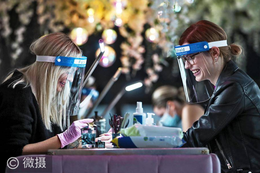 在英国曼彻斯特北区的一家美容院和有执照的场所“美容与泡泡”中,安静是最显着的特征。可用的约会较少,并且客户被要求独自一人,没有一群妇女聊天。这是冠状病毒期间英国解禁后的真实写照。经过很长一段时间大流行后回到美容院总是会感到奇怪。