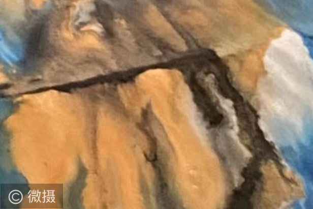 与传统的表现手法迥然有别,霜凝先生以极为浪漫而又细腻的色调和笔触,将清沏的蓝、泥沙俱下的黄、欢快浪花的白、奔涌而下代表力量的黑,完美而又唯美给人以极强的视觉美感和内心的共鸣震撼,赋予江河极为饱满的内涵和画面的丰富,令人极自然地联想到《蓝色多瑙河》的壮观唯美、温婉清沏。