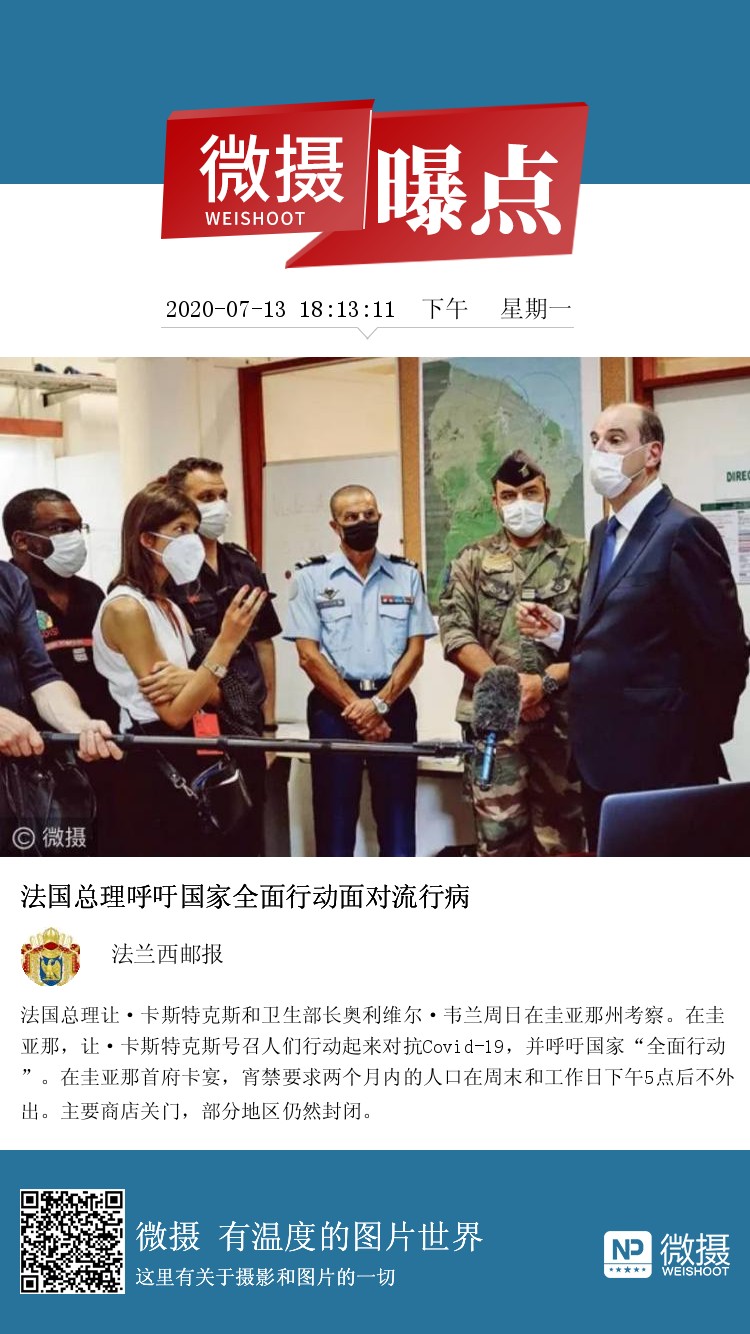 法国总理让·卡斯特克斯和卫生部长奥利维尔·韦兰周日在圭亚那州考察。在圭亚那,让·卡斯特克斯号召人们行动起来对抗Covid-19,并呼吁国家“全面行动”。在圭亚那首府卡宴,宵禁要求两个月内的人口在周末和工作日下午5点后不外出。主要商店关门,部分地区仍然封闭。