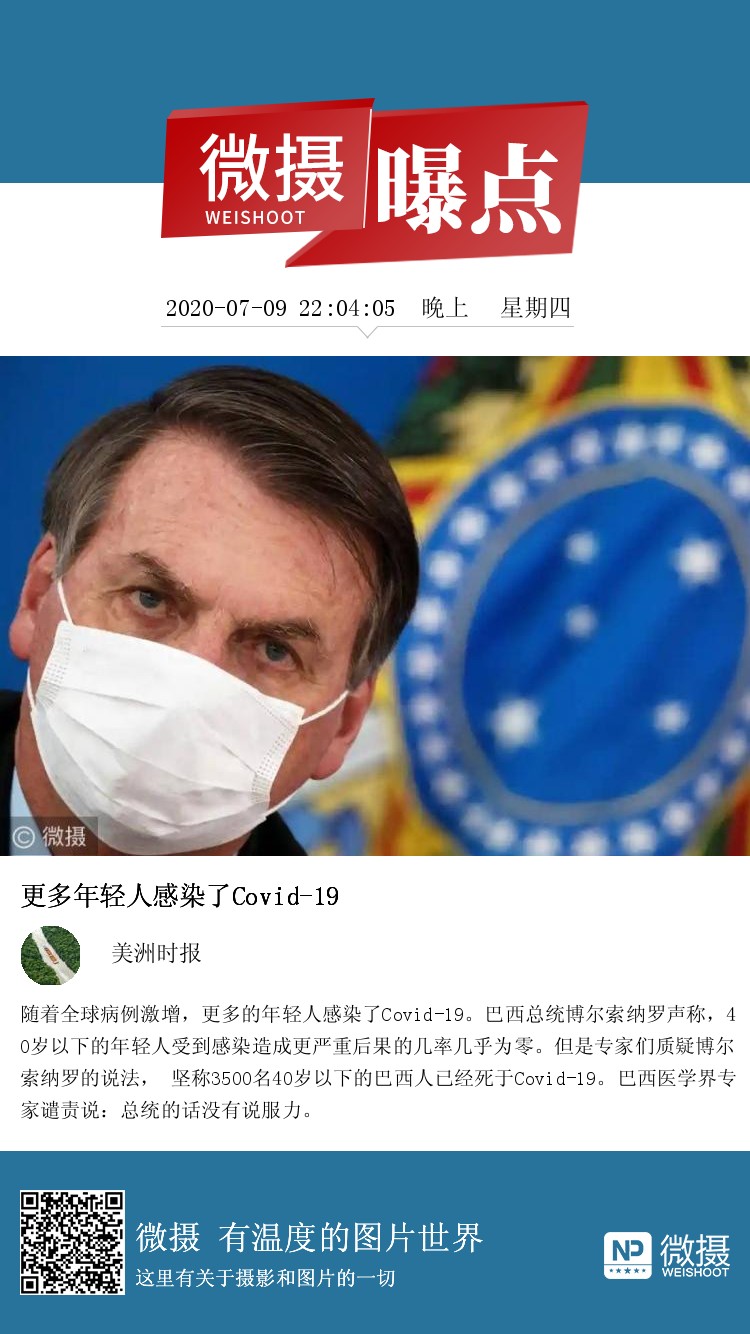 随着全球病例激增,更多的年轻人感染了Covid-19。巴西总统博尔索纳罗声称,40岁以下的年轻人受到感染造成更严重后果的几率几乎为零。但是专家们质疑博尔索纳罗的说法, 坚称3500名40岁以下的巴西人已经死于Covid-19。巴西医学界专家谴责说:总统的话没有说服力。