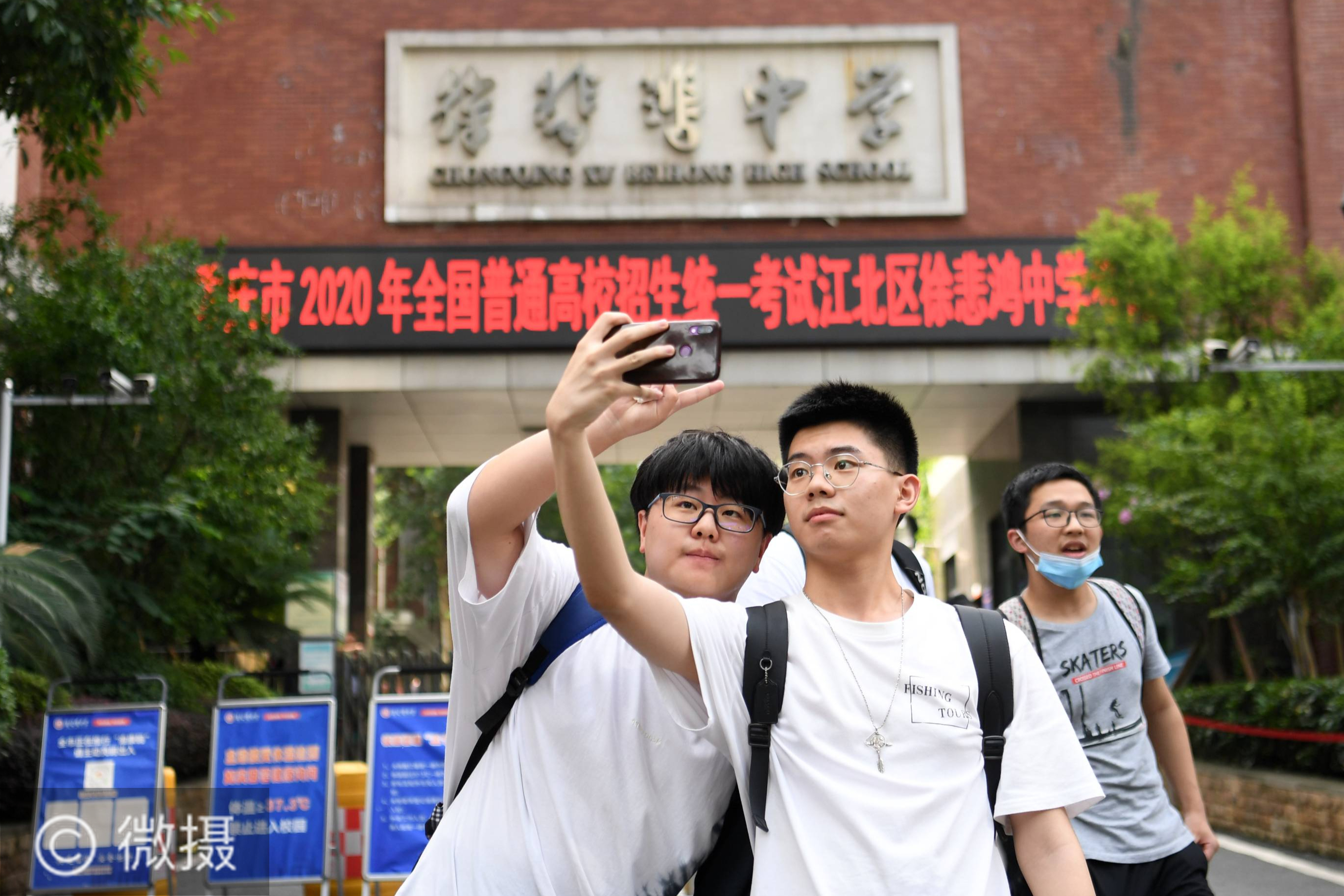 全国部分地区2020年高考结束。7月8日,在重庆市徐悲鸿中学考点,考生在考试结束后在校门口合影。当日,全国部分地区2020年高考结束。新华社记者 唐奕 摄 新华社照片,重庆,2020年7月8日