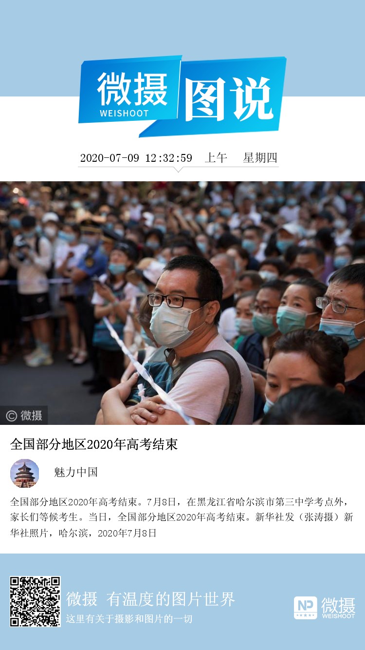 全国部分地区2020年高考结束。7月8日,在黑龙江省哈尔滨市第三中学考点外,家长们等候考生。当日,全国部分地区2020年高考结束。新华社发(张涛摄)新华社照片,哈尔滨,2020年7月8日