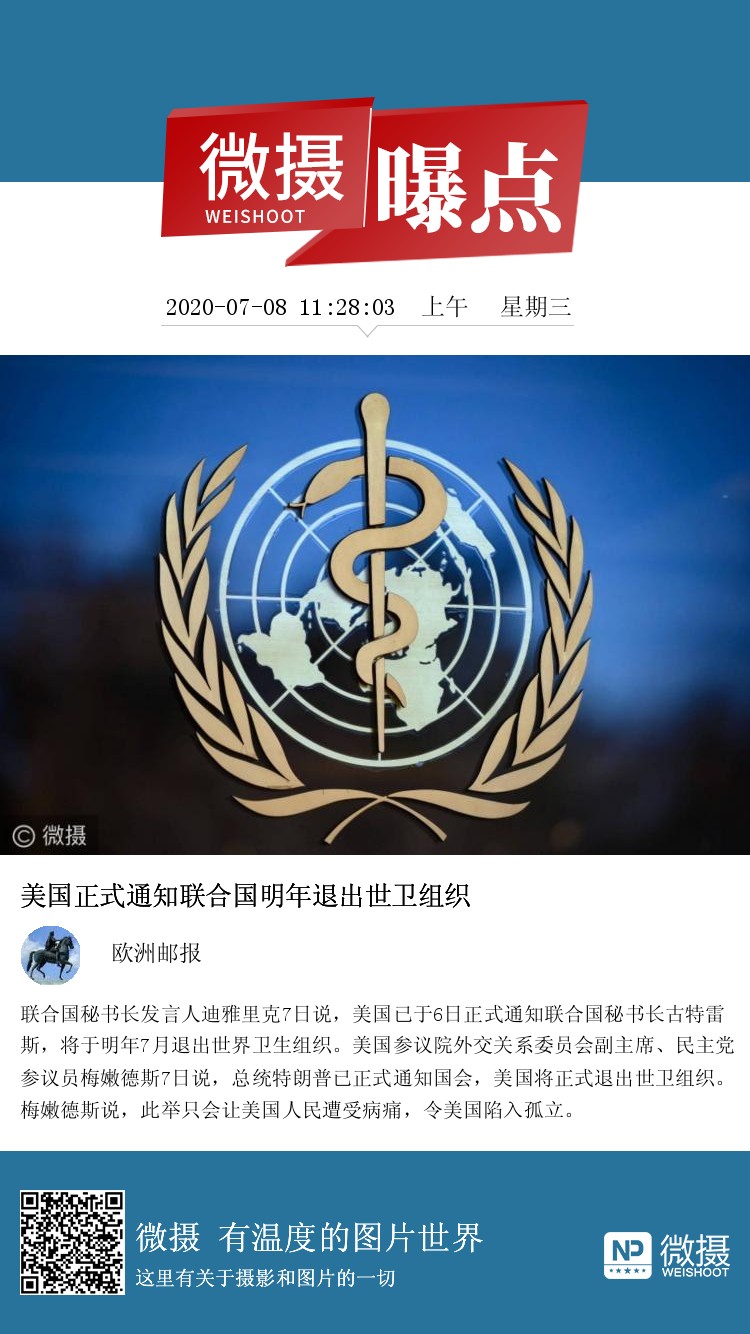 美国正式通知联合国明年退出世卫组织