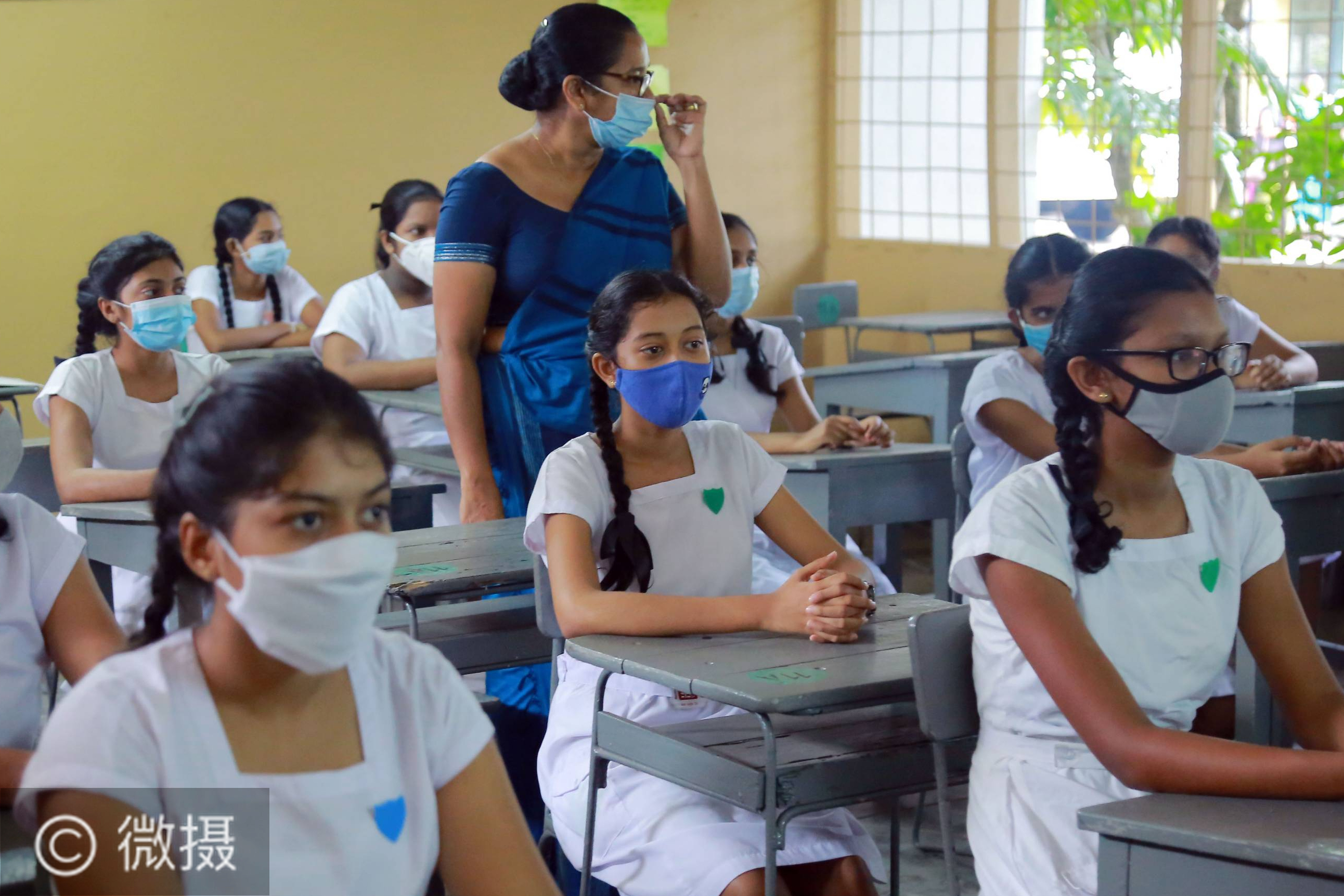斯里兰卡:学校开始复课。7月6日,斯里兰卡科伦坡一所学校的学生在上课。斯里兰卡的学校因疫情而关闭三个多月后,于7月6日开始分阶段复课。新华社发(阿吉特·佩雷拉摄)