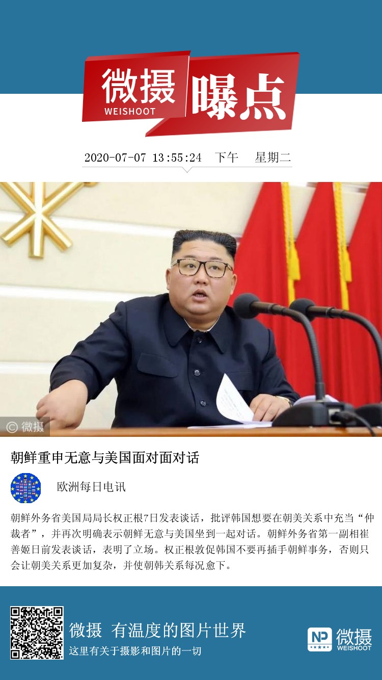 朝鲜外务省美国局局长权正根7日发表谈话,批评韩国想要在朝美关系中充当“仲裁者”,并再次明确表示朝鲜无意与美国坐到一起对话。朝鲜外务省第一副相崔善姬日前发表谈话,表明了立场。权正根敦促韩国不要再插手朝鲜事务,否则只会让朝美关系更加复杂,并使朝韩关系每况愈下。