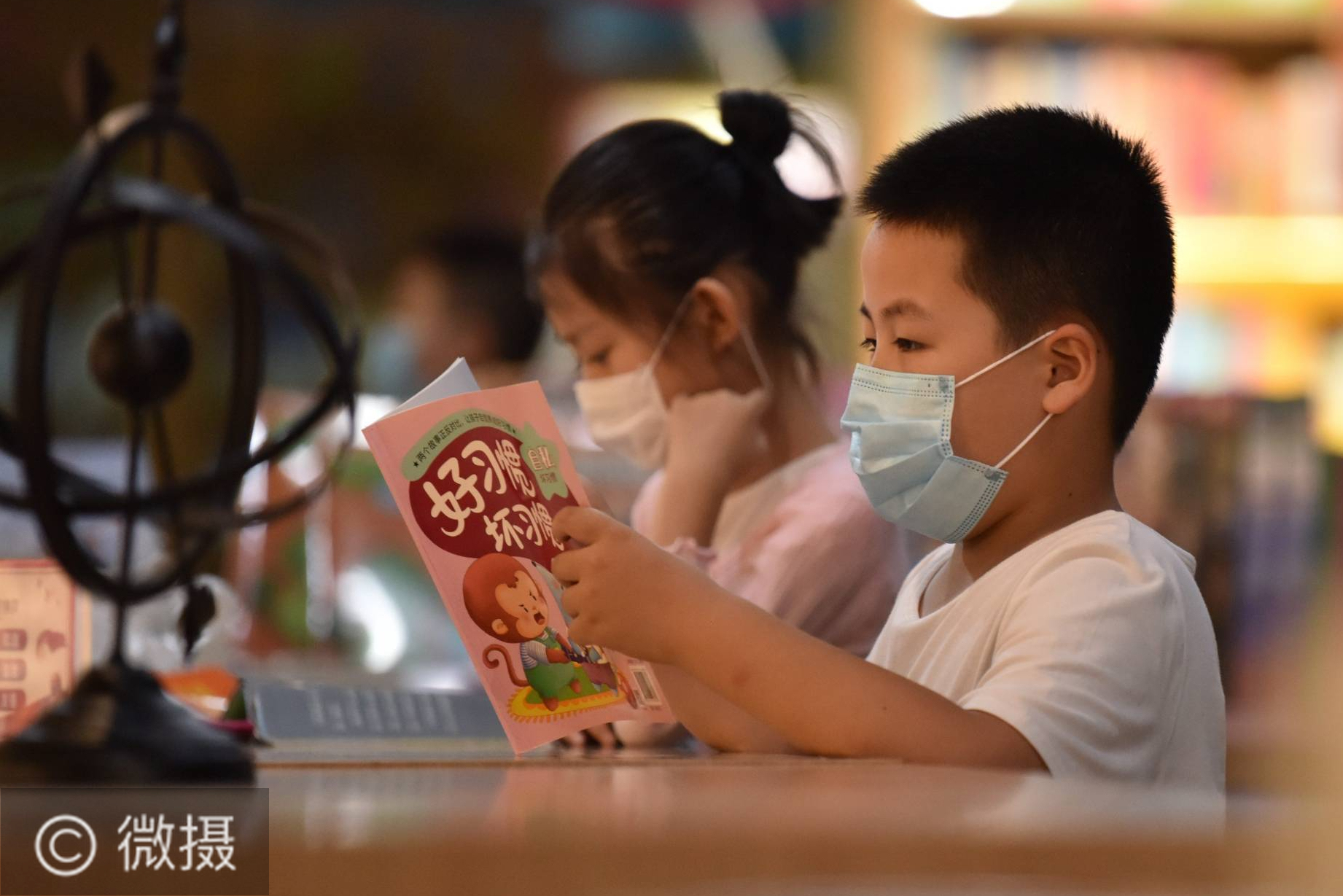7月5日,小朋友在河北省定州市新华书店阅读图书。近日,河北省定州市新华书店在做好疫情防控的前提下,开展“乐享图书嘉年华”系列活动,通过举办图书联展、亲子阅读、少儿读物推介等活动,吸引少年儿童走进图书馆,感受书香陪伴的夏天。新华社记者 朱旭东 摄