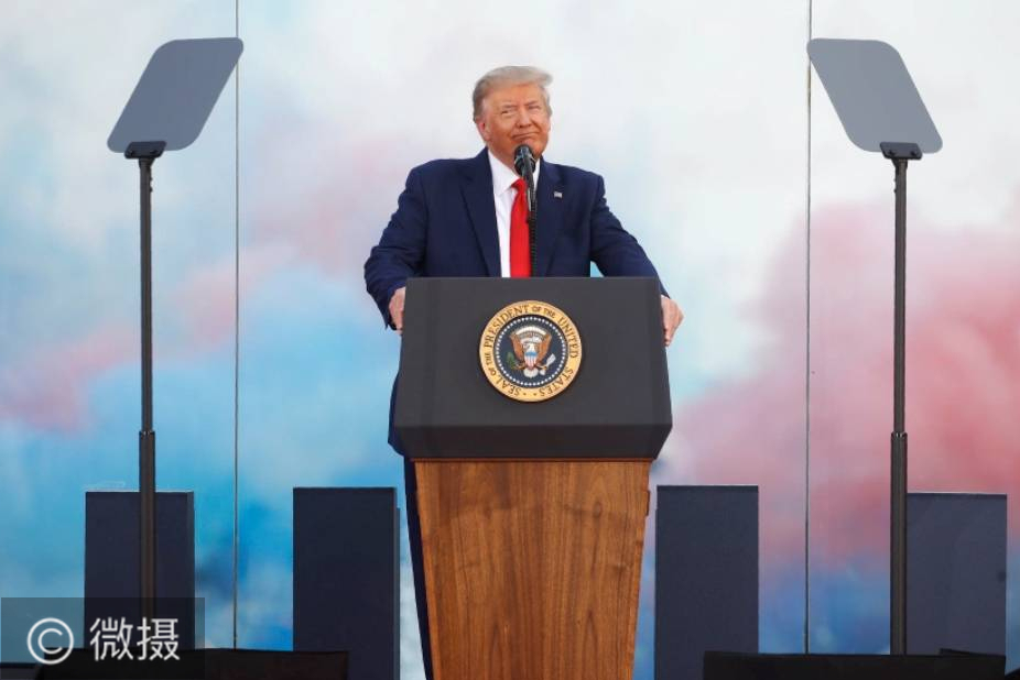 特朗普在7月4日发表了激烈的演讲再次激怒民众。他对媒体造成了打击,他认为媒体诽谤那些在内战中阵亡的人。在距离特朗普发表讲话仅数米之遥的地方,组织者领导了整个城市示威游行,以纪念“黑人生活”。在拉斐特广场外示威者焚烧了美国国旗。当旗帜被烧毁时,抗议者高呼“奴隶制,种族灭绝和战争”。