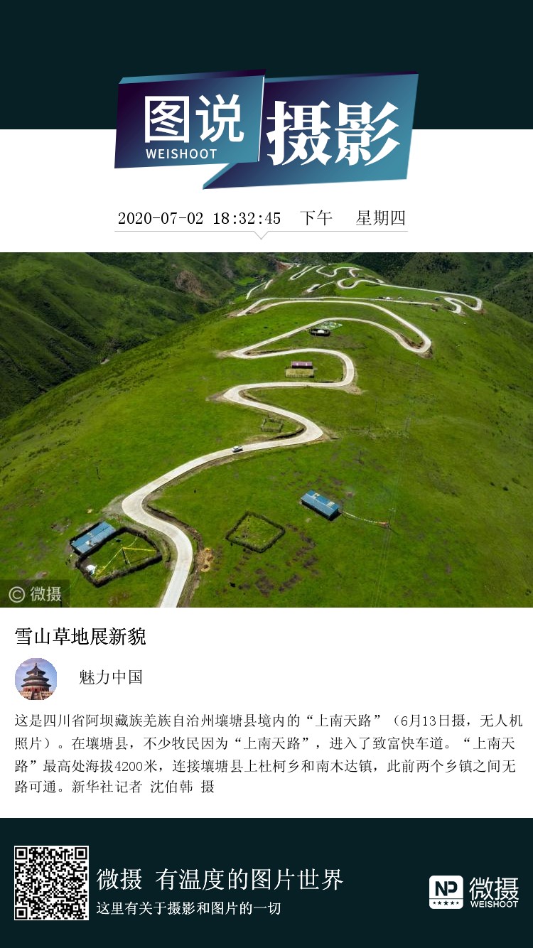 这是四川省阿坝藏族羌族自治州壤塘县境内的“上南天路”(6月13日摄,无人机照片)。在壤塘县,不少牧民因为“上南天路”,进入了致富快车道。“上南天路”最高处海拔4200米,连接壤塘县上杜柯乡和南木达镇,此前两个乡镇之间无路可通。新华社记者 沈伯韩 摄