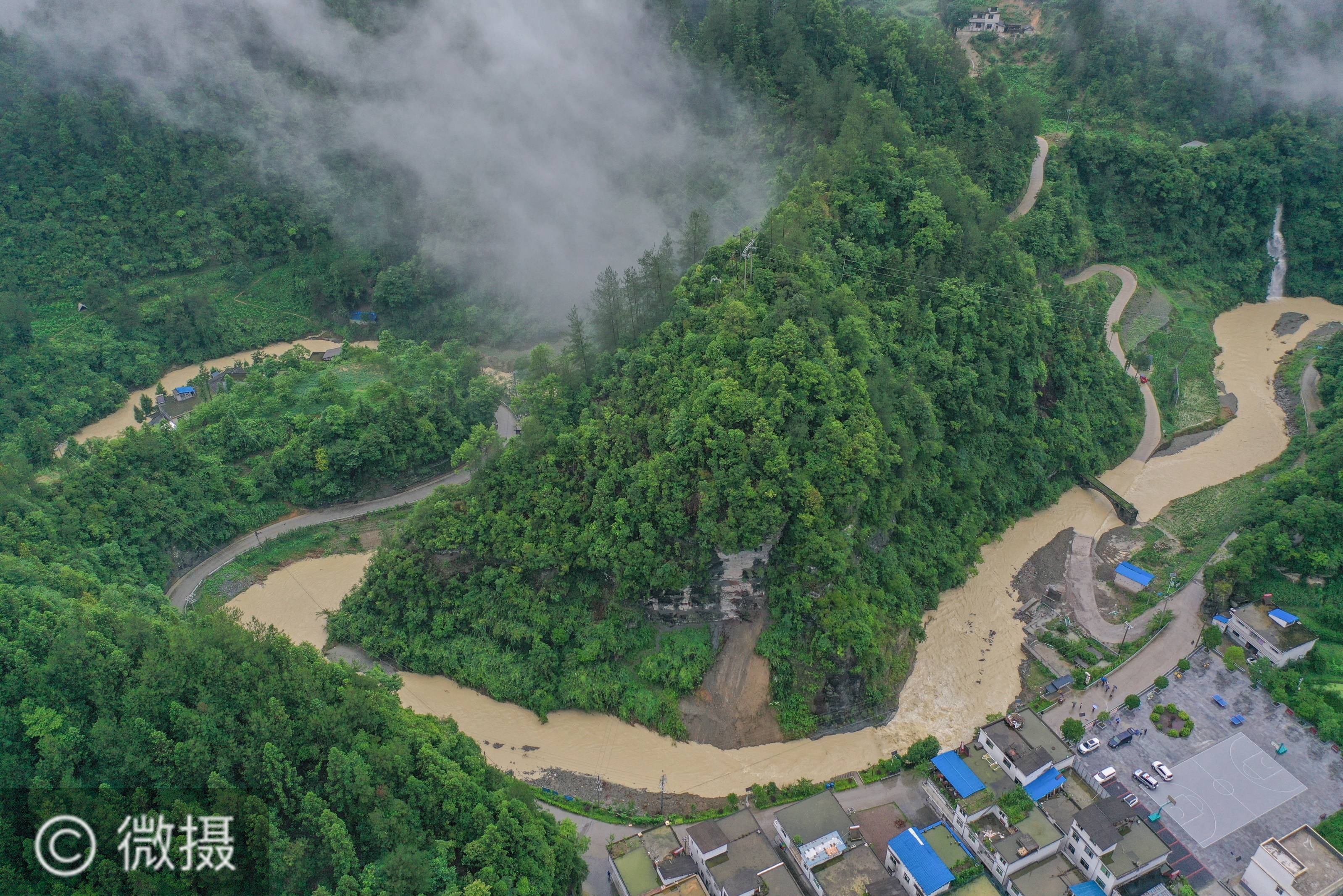 这是7月1日在重庆市黔江区金溪镇平溪村拍摄的袁溪河洪水(无人机照片)。近日,重庆市黔江区迎来新一轮强降雨天气。强降雨导致黔江区部分中小河流出现不同程度涨水。目前,新一轮强降雨已造成黔江区部分乡镇的道路、农作物不同程度受灾。新华社记者 黄伟 摄