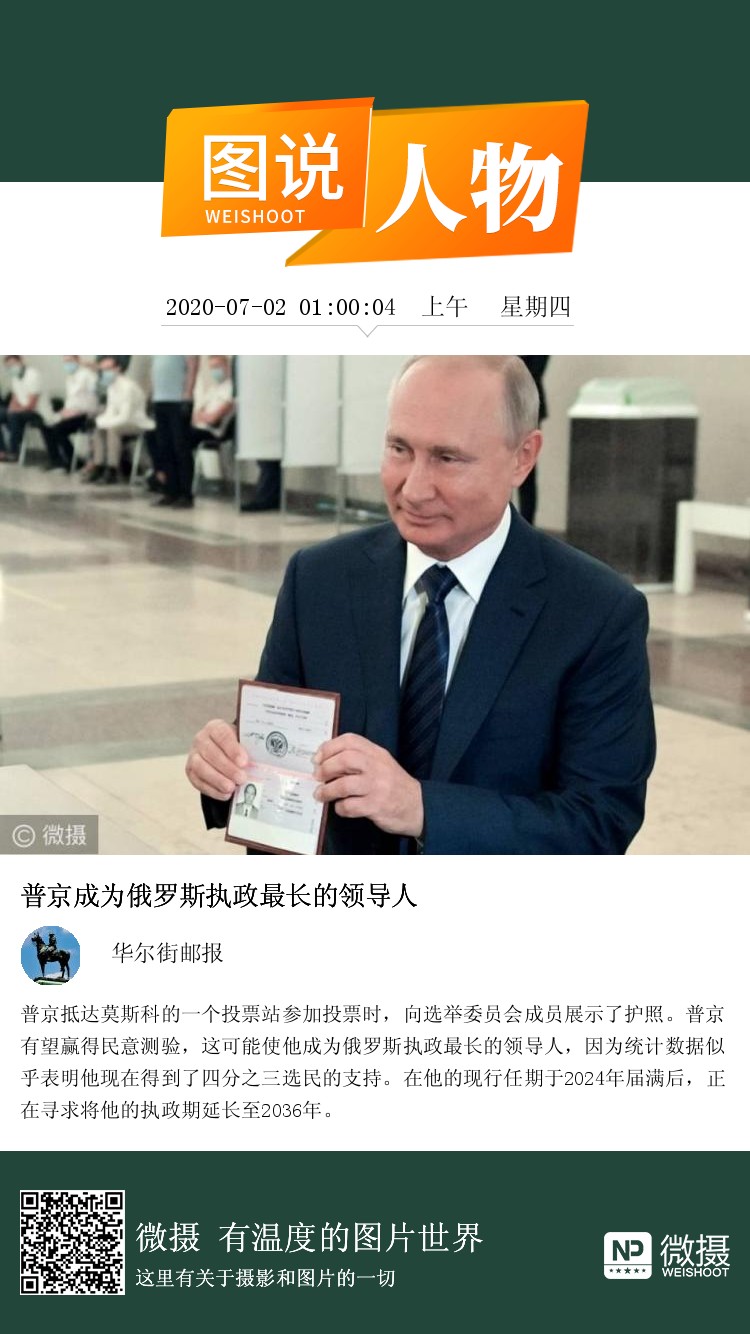 普京抵达莫斯科的一个投票站参加投票时,向选举委员会成员展示了护照。普京有望赢得民意测验,这可能使他成为俄罗斯执政最长的领导人,因为统计数据似乎表明他现在得到了四分之三选民的支持。在他的现行任期于2024年届满后,正在寻求将他的执政期延长至2036年。