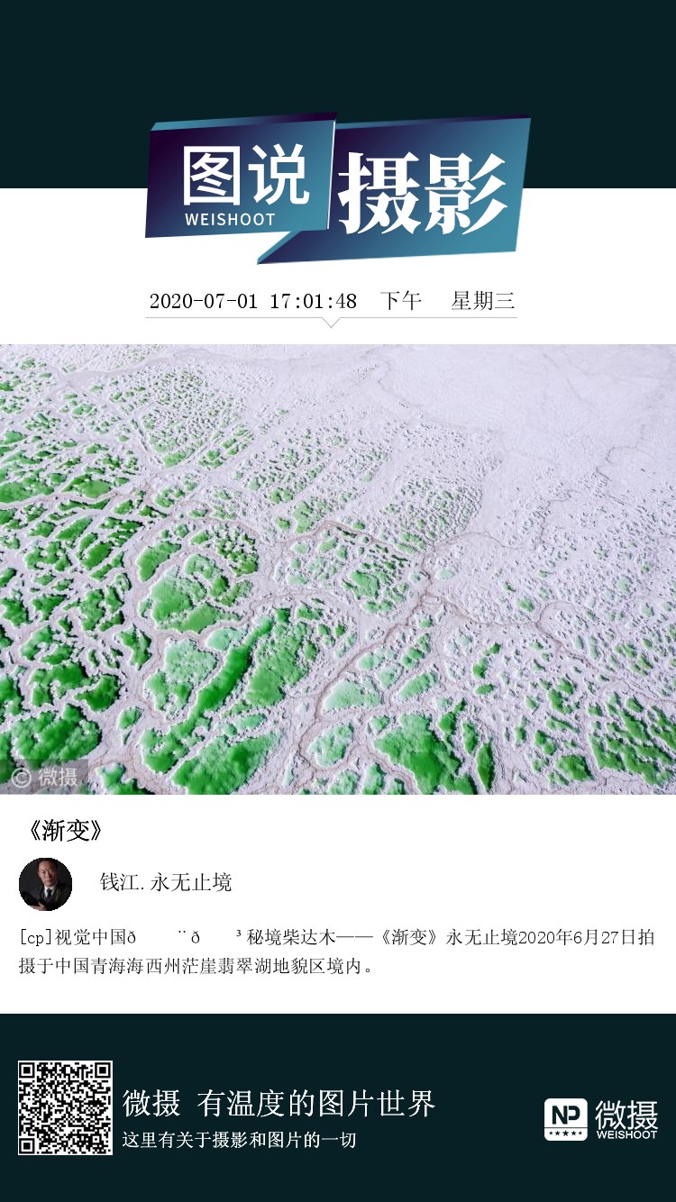 [cp]视觉中国🇨🇳秘境柴达木——《渐变》永无止境2020年6月27日拍摄于中国青海海西州茫崖翡翠湖地貌区境内。