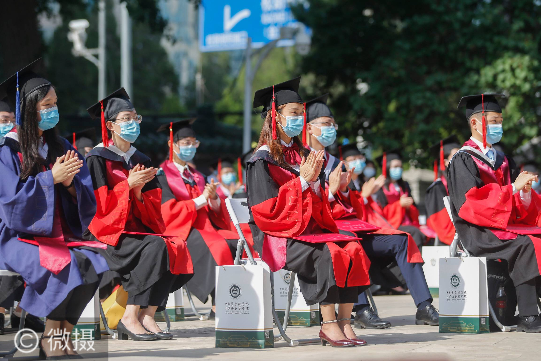 6月30日,部分北京协和医学院2020届毕业生出席毕业典礼。当日,北京协和医学院2020届“云毕业典礼”在北京举行。由于疫情防控需要,今年的典礼仅少量在校毕业生现场出席,更多毕业生通过线上直播参与毕业典礼。新华社记者 张玉薇 摄