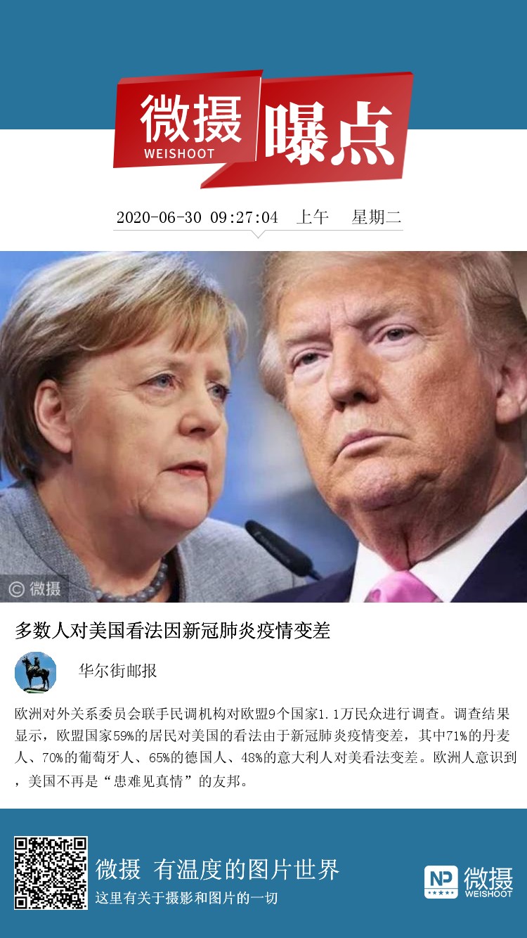 欧洲对外关系委员会联手民调机构对欧盟9个国家1.1万民众进行调查。调查结果显示,欧盟国家59%的居民对美国的看法由于新冠肺炎疫情变差,其中71%的丹麦人、70%的葡萄牙人、65%的德国人、48%的意大利人对美看法变差。欧洲人意识到,美国不再是“患难见真情”的友邦。
