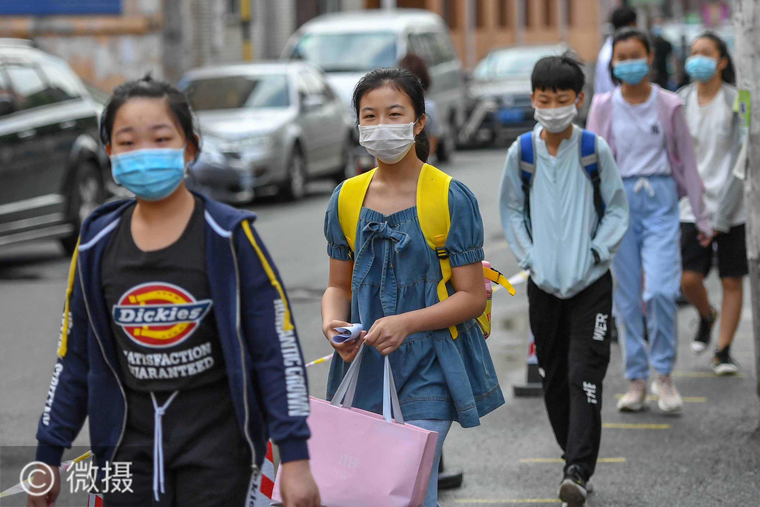6月29日,在吉林市第一实验小学,学生陆续入校。当日,吉林省吉林市城区初中一、二年级,小学四至六年级复课。吉林市教育局要求各学校组织学生错峰入校、放学、就餐和参加体育活动,确保校园疫情防控安全。新华社记者 张楠 摄