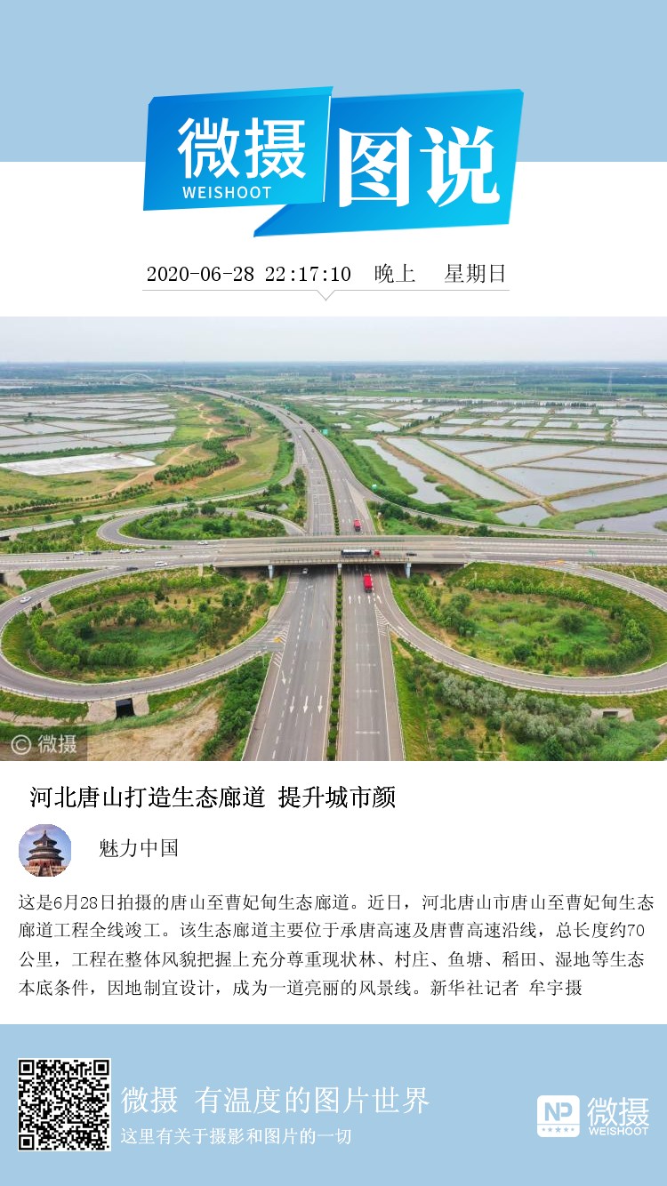这是6月28日拍摄的唐山至曹妃甸生态廊道。近日,河北唐山市唐山至曹妃甸生态廊道工程全线竣工。该生态廊道主要位于承唐高速及唐曹高速沿线,总长度约70公里,工程在整体风貌把握上充分尊重现状林、村庄、鱼塘、稻田、湿地等生态本底条件,因地制宜设计,成为一道亮丽的风景线。新华社记者 牟宇摄