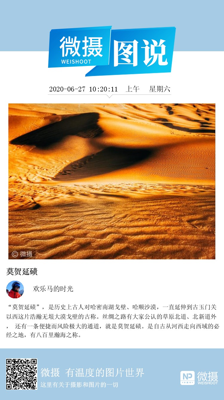 “莫贺延碛”,是历史上古人对哈密南湖戈壁、哈顺沙漠,一直延伸到古玉门关以西这片浩瀚无垠大漠戈壁的古称。丝绸之路有大家公认的草原北道、北新道外, 还有一条便捷而风险极大的通道,就是莫贺延碛。是自古从河西走向西域的必经之地,有八百里瀚海之称。
