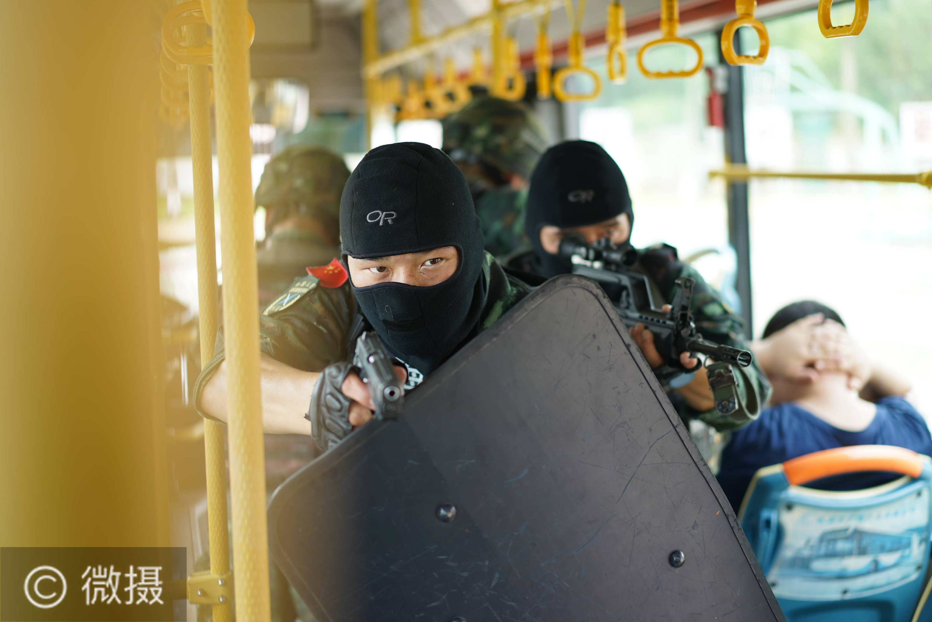 炎炎夏日,一群橄榄绿身着“战甲”,与烈日为伴,不断挑战极限,锻造过硬本领。连日来,武警部队“魔鬼周”极限训练正在火热进行中,在这场残酷的训练中,官兵们都经历了什么?武警广东总队珠海支队特战队员组织公交车反劫持反恐突入课目训练(6月21日摄)。新华社发(翟彦博 摄)